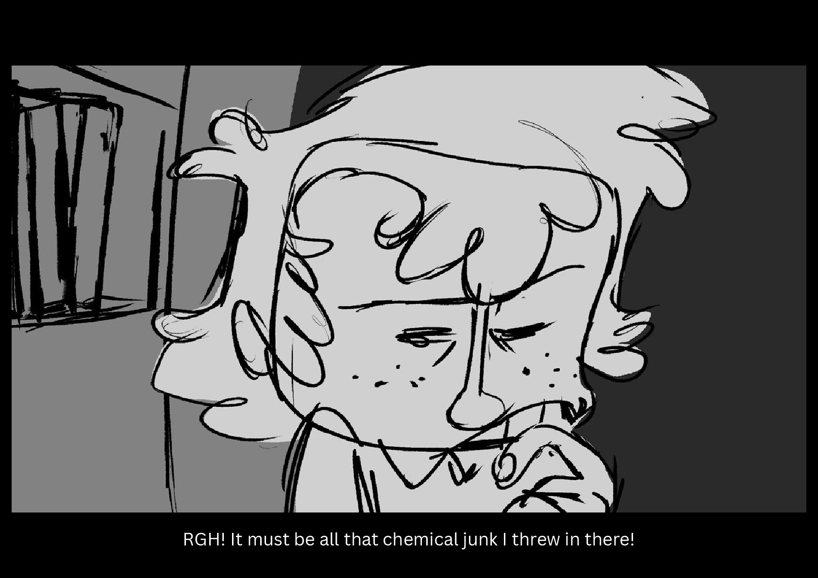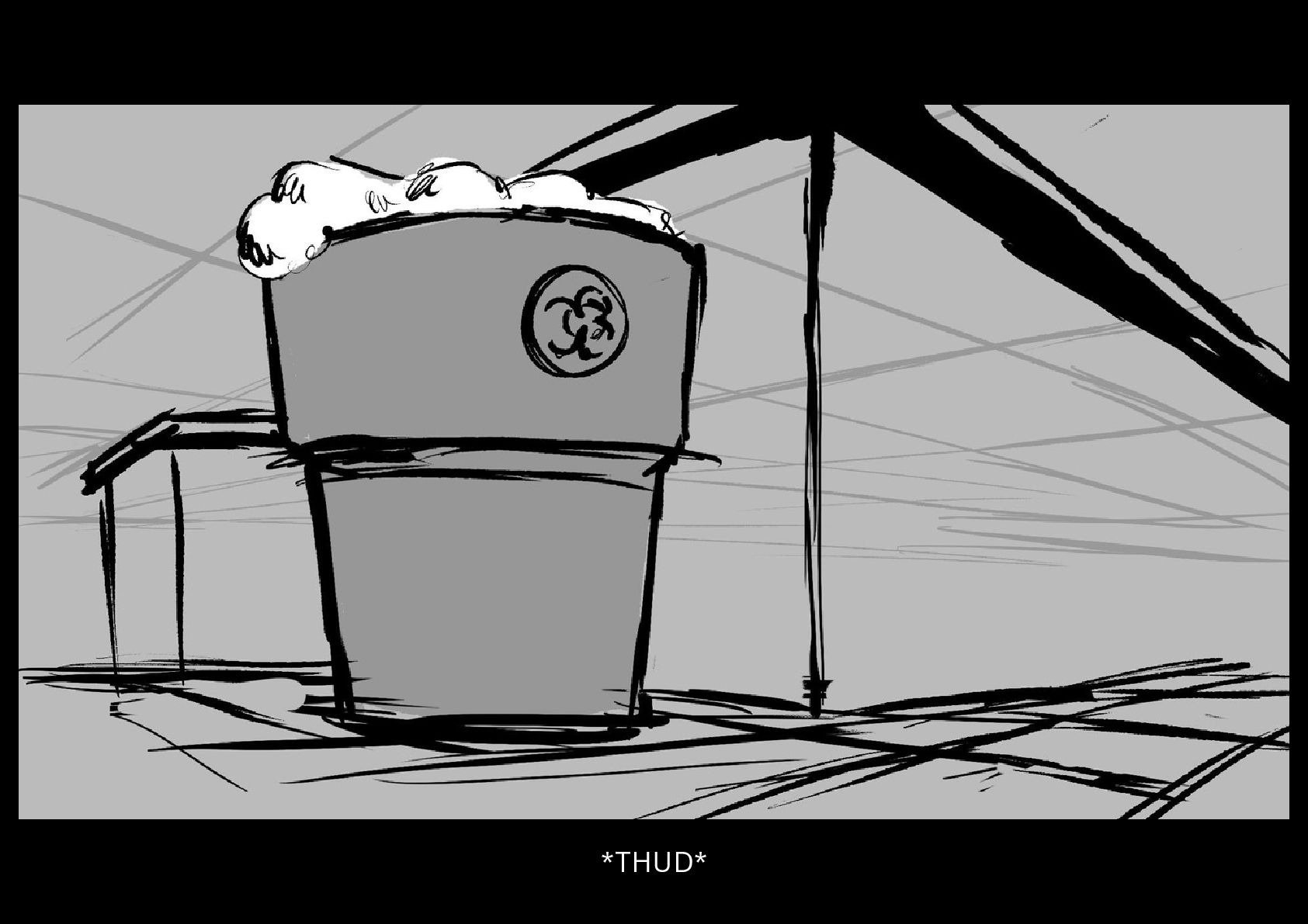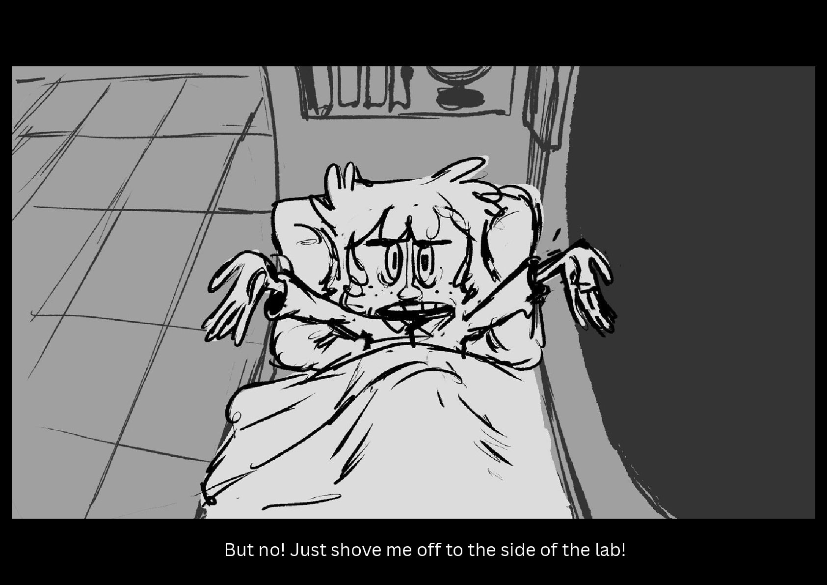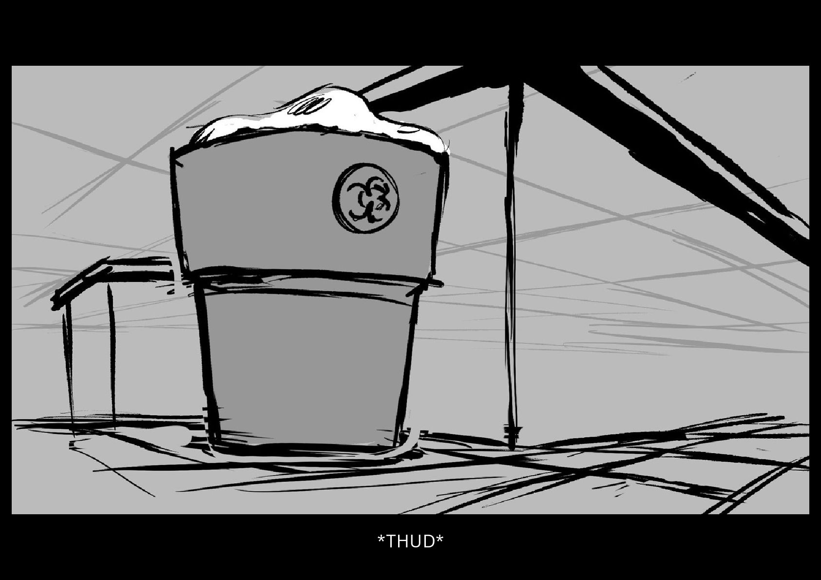As Gilbert reluctantly tries to sleep in his cramped nook off to the side of the space station science lab he's been placed in, he hears a mysterious chemical reaction take place on the other side of the room.