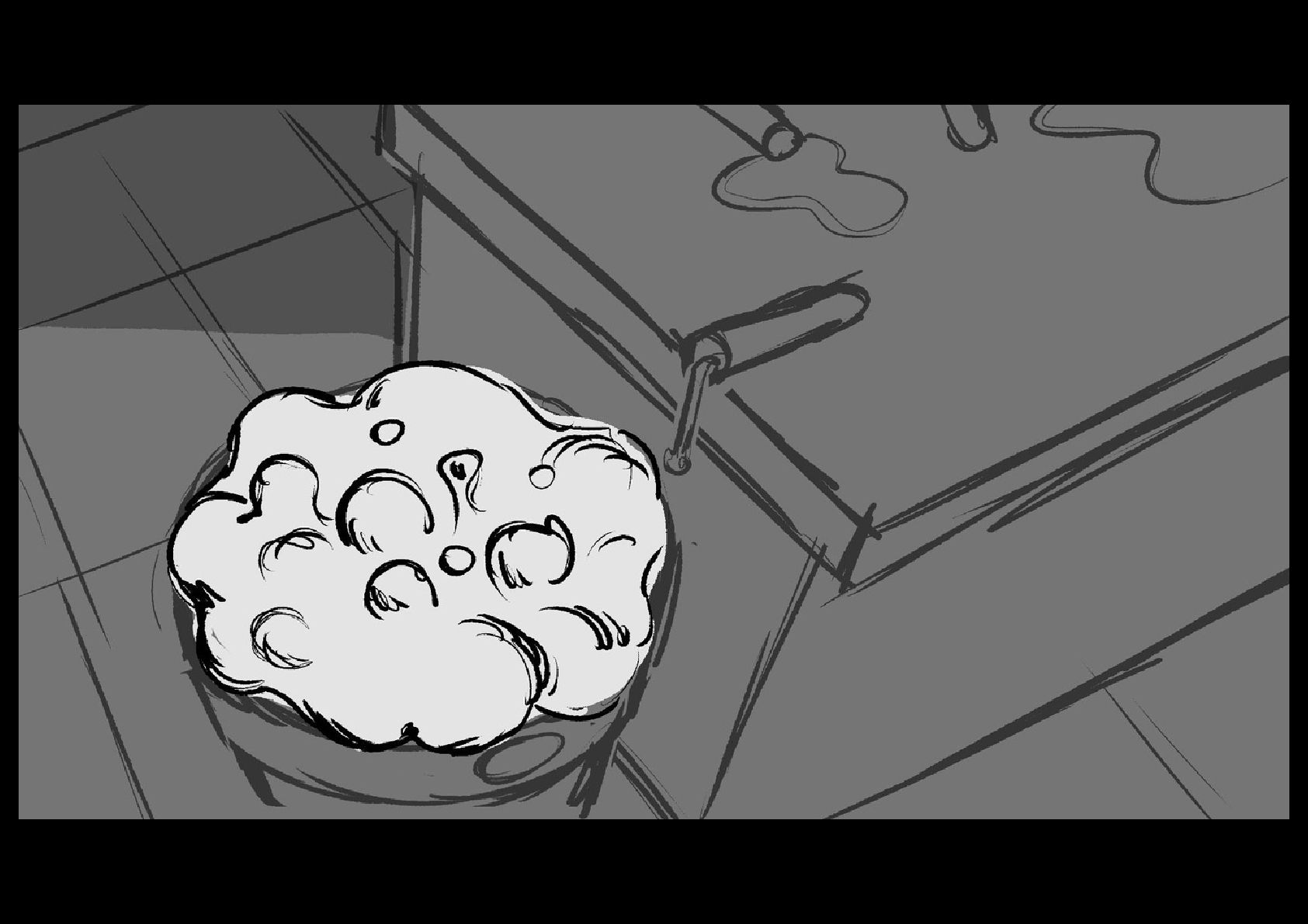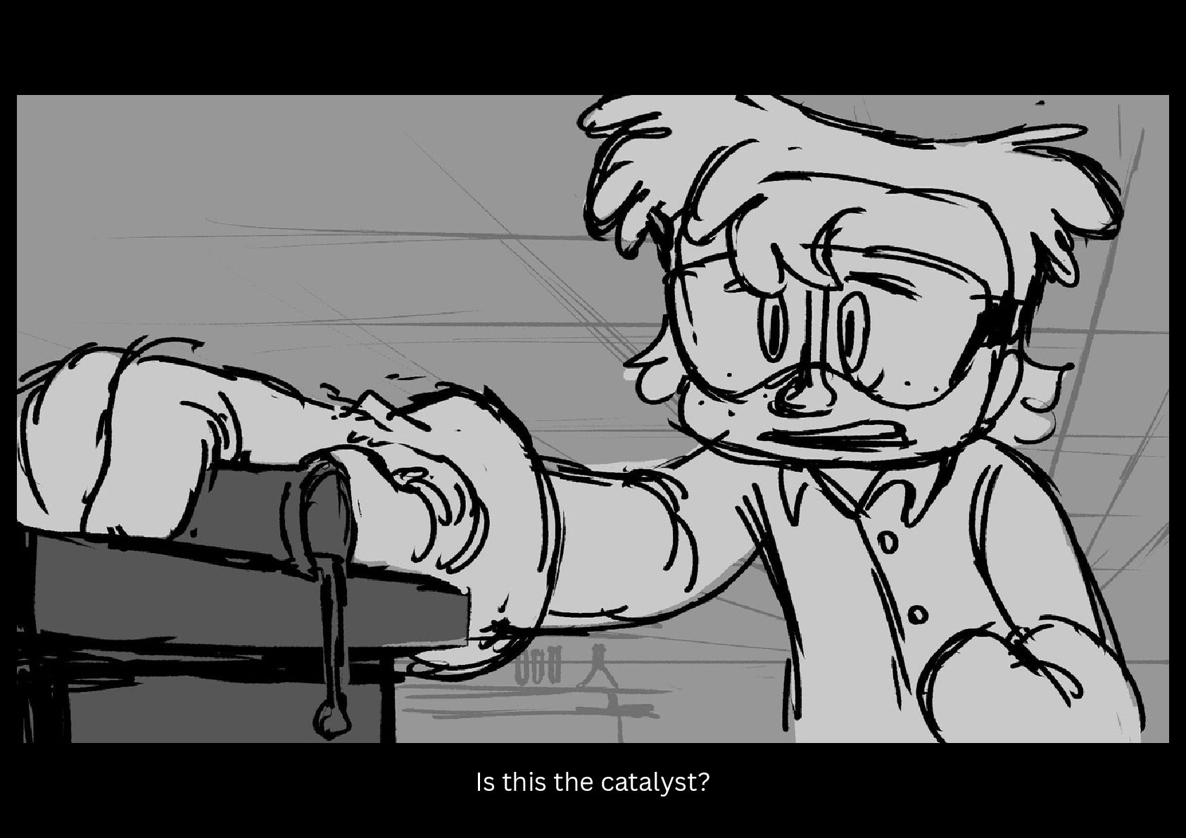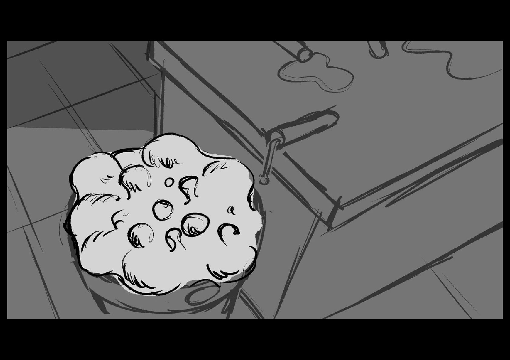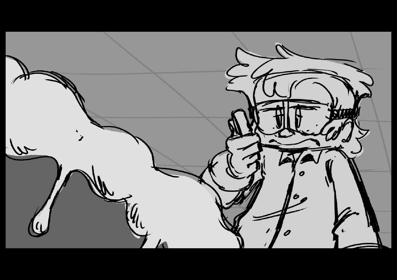 As Gilbert reluctantly tries to sleep in his cramped nook off to the side of the space station science lab he's been placed in, he hears a mysterious chemical reaction take place on the other side of the room.