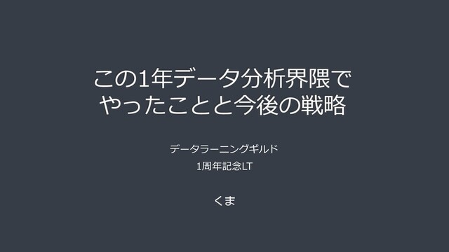 この1年データ分析界隈で やったことと今後の戦略 データラーニングギルド 1周年記念LT