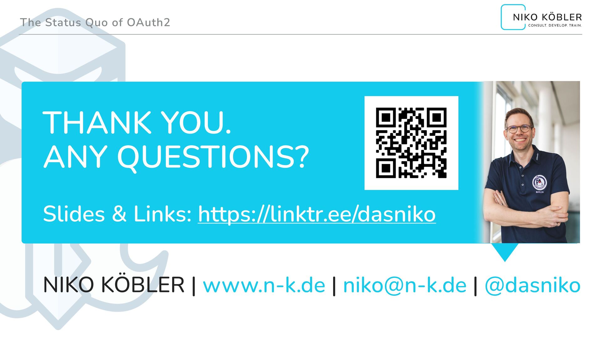 2.0 Overview: https://oauth.net/2/ ▸ OAuth Core, RFC 6749: https://datatracker.ietf.org/doc/html/rfc6749 ▸ OAuth 2.0 Threat Model and Security Considerations, RFC 6819: https://datatracker.ietf.org/doc/html/rfc6819 ▸ OAuth 2.0 Token Revocation, RFC 7009: https://datatracker.ietf.org/doc/html/rfc7009 ▸ Proof Key for Code Exchange, RFC 7636: https://datatracker.ietf.org/doc/html/rfc7636 ▸ OAuth 2.0 for Native Apps, RFC 8252: https://datatracker.ietf.org/doc/html/rfc8252 ▸ OAuth 2.0 Device Authorization Grant, RFC 8628: https://datatracker.ietf.org/doc/html/rfc8628 ▸ OAuth 2.0 for Browser-Based Apps: https://datatracker.ietf.org/doc/html/draft-ietf-oauth-browser-based-apps ▸ OAuth 2.0 Security Best Current Practice: https://datatracker.ietf.org/doc/html/draft-ietf-oauth-security-topics