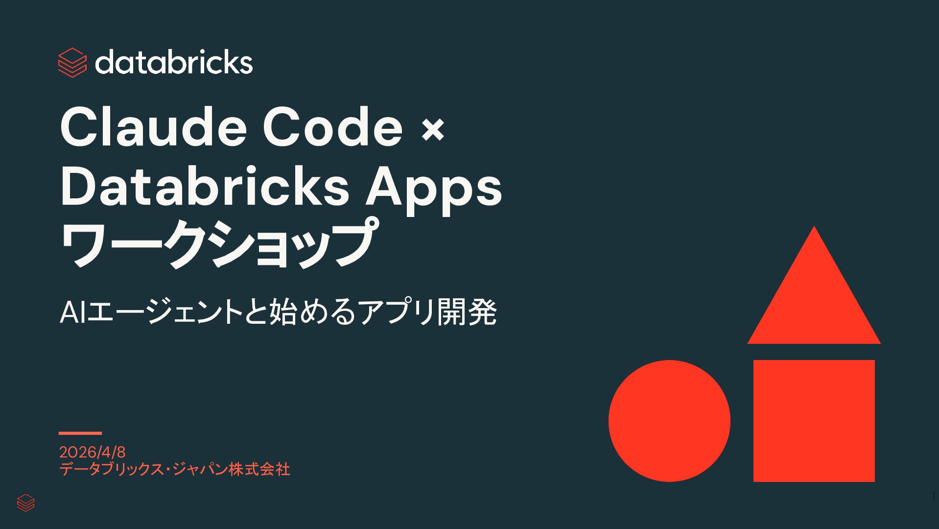 Claude Code × Databricks Apps ワークショップ 2026/4/8 データブリックス・ジャパン株式会社 AIエージェントと始めるアプリ開発 1