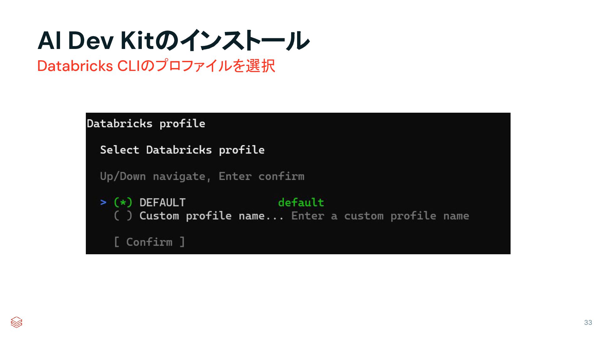 AI Dev Kitのインストール 33 Databricks CLIのプロファイルを選択