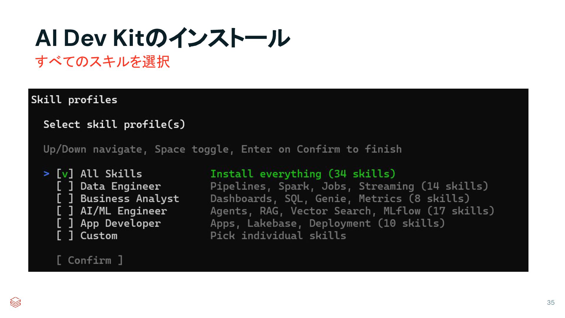 AI Dev Kitのインストール 35 すべてのスキルを選択