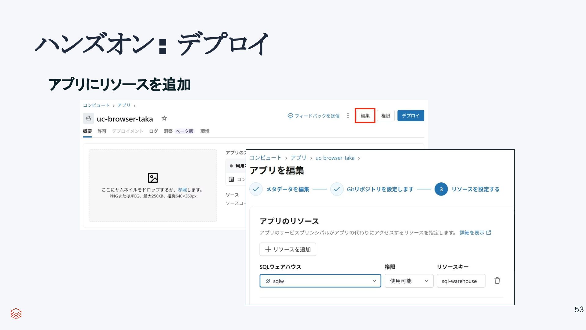 ハンズオン : デプロイ 53 アプリにリソースを追加