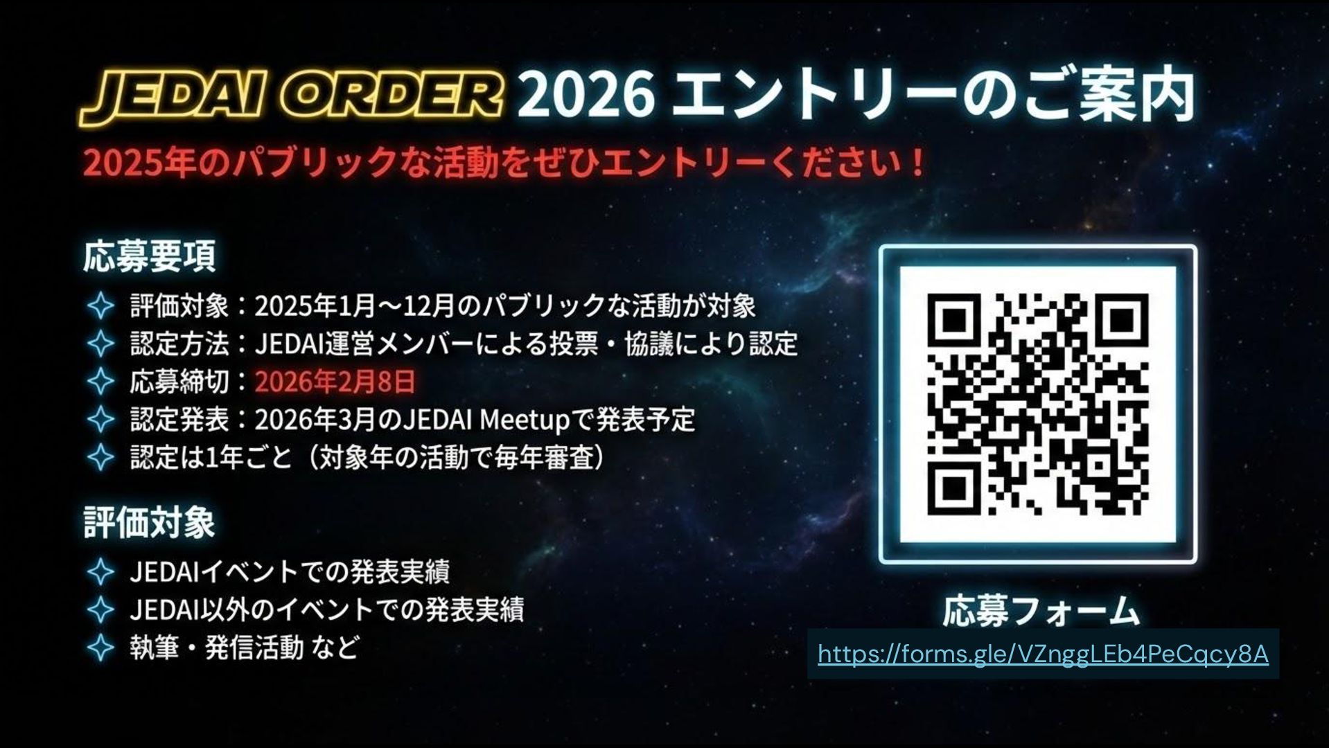 JEDAI認定プログラム JEDAI Order 2026 エントリーのご案内 / JEDAI Order 2026 Entry