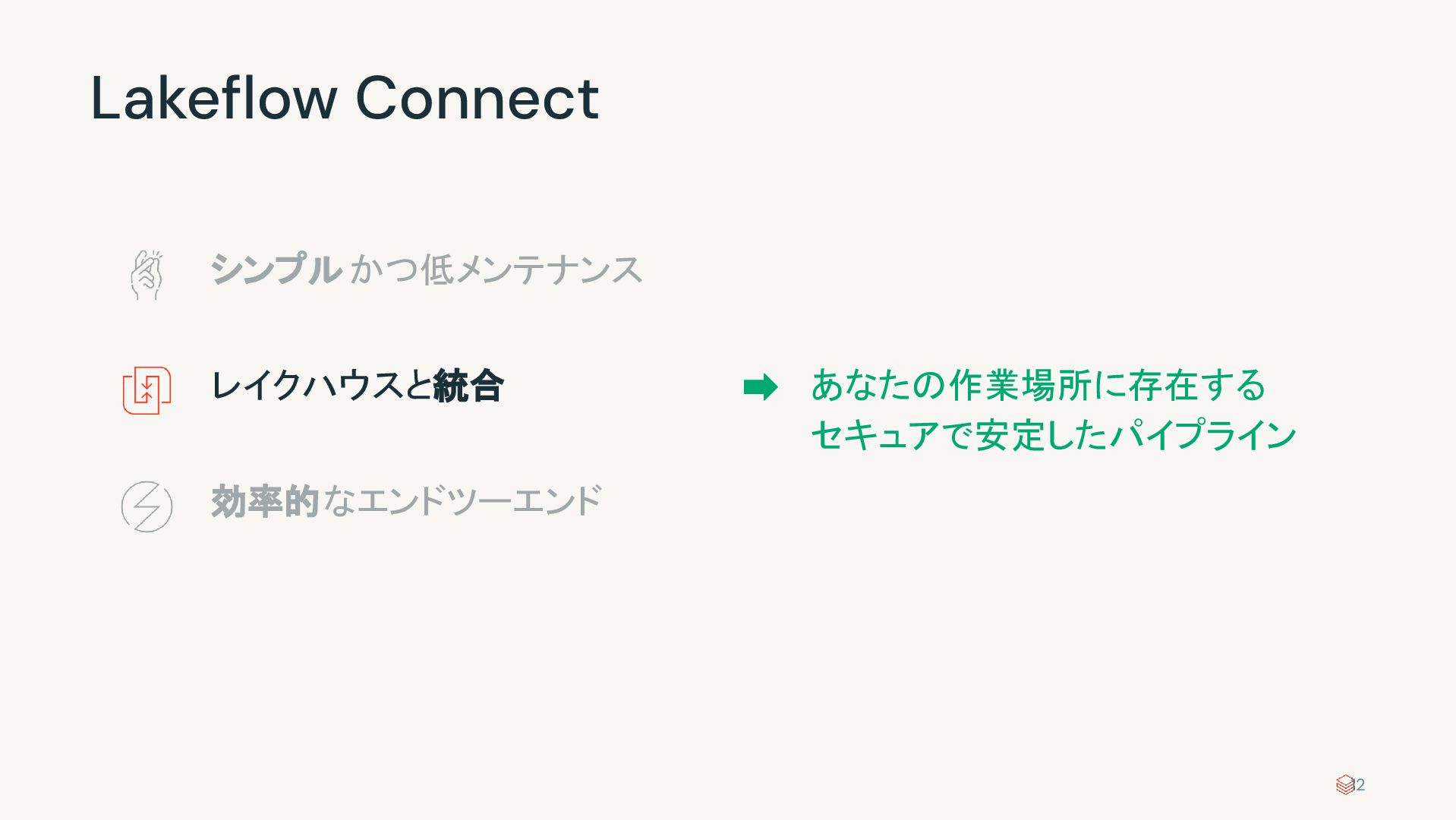 Public Preview Private Preview Private Preview Private Preview データベース Private Preview … … Public Preview Public Preview 変更可能性あり | go/connectors/timelines In development Roadmap Roadmap Roadmap In Dev Roadmap In development Roadmap Roadmap Amazon DynamoDB Last updated November 2024