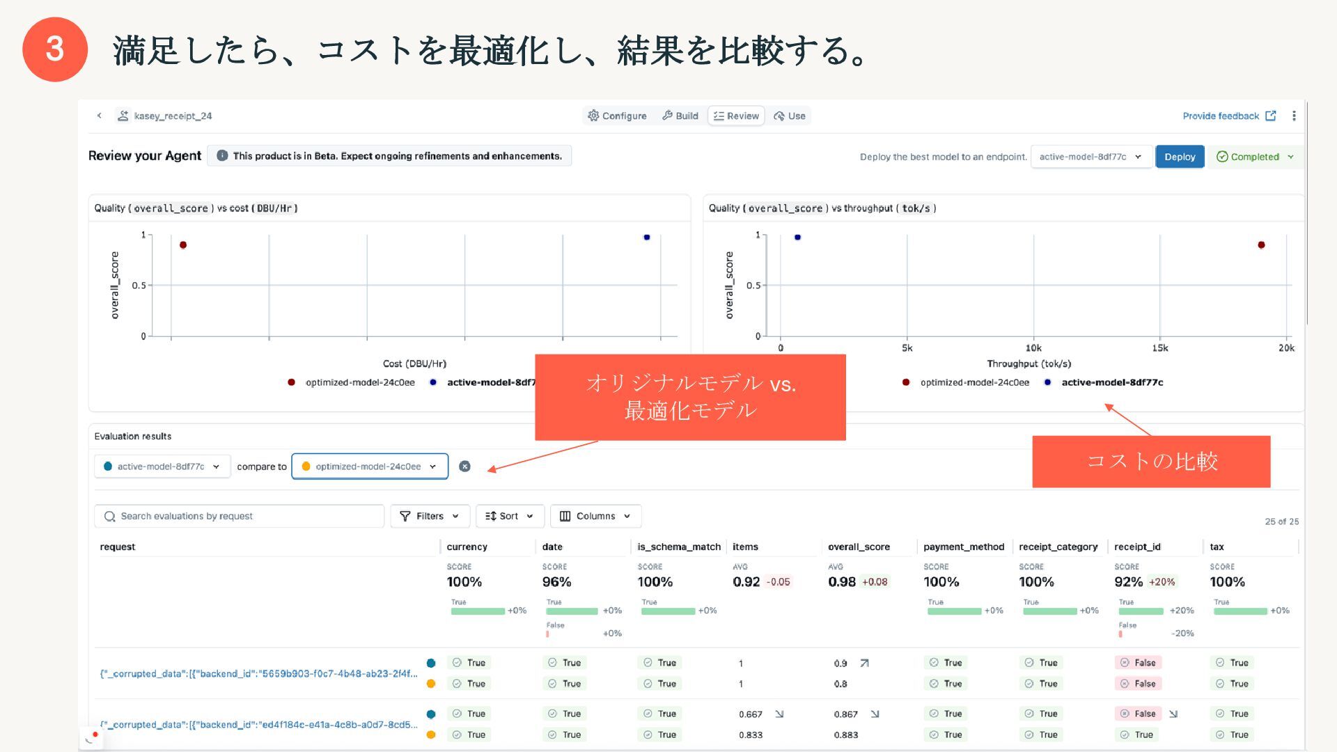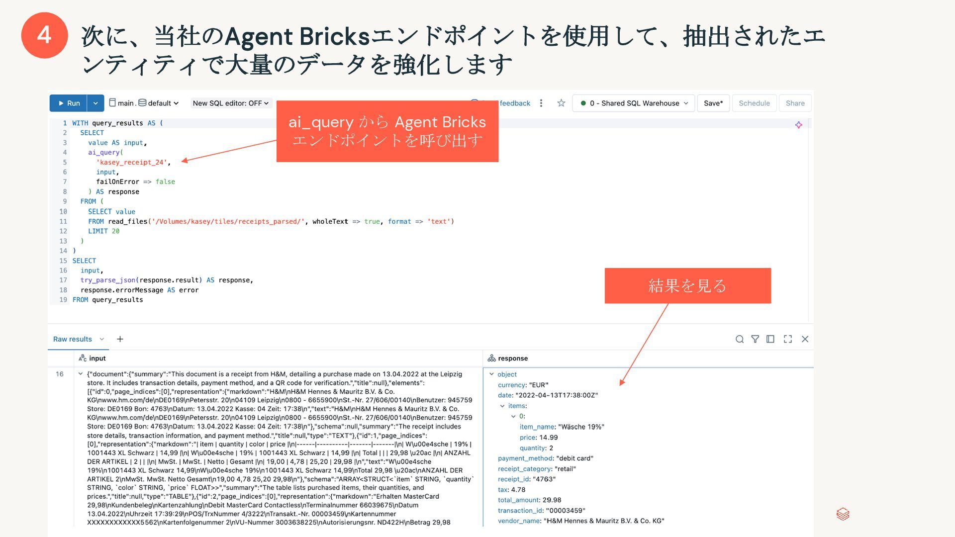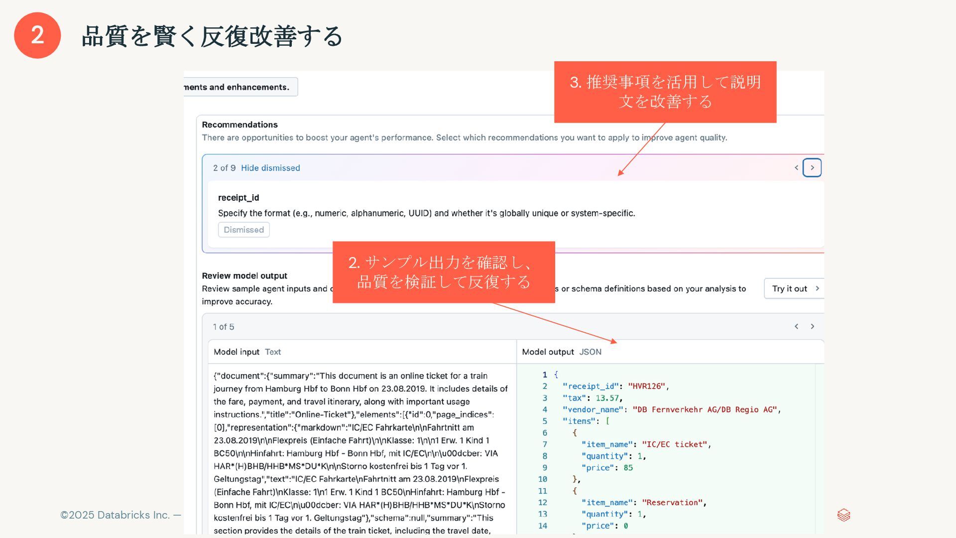 非構造化テキストを構造化データに、カスタム要件を加味しながら変換する 顧客サポートセンター通話録音 - 2024年3月15日 14:23 サポート担当者: お忙しい中お電話いただき、ありがとうございま す。本日はどのようなご用件でしょうか? 顧客: こんにちは。実は先週購入したキャンピングカーの冷蔵庫の 調子が悪くて困っているんです。 サポート担当者: 申し訳ございません。詳しい状況を教えていただ けますでしょうか? 顧客: ええ、2019年式のワンボックスカーベースのキャンピング カー、A社製のXXモデルです。去年の8月に製造されたものを中古 で購入しました。冷蔵庫が全然冷えなくて、B社製の3wayタイプな んですが... サポート担当者: なるほど、冷却に問題があるということですね。 電源はどちらをお使いでしょうか? 顧客: 主にDC12Vで使っているんですが、ACでも試してみました が同じでした。 ・・・ { "call_id": "CC_240315_142301", "product_mentions": [ "キャンピングカー", "3way冷蔵庫" ], "rv_details": { "year": "2019", "make": "A社", "model": "XXモデル" }, "mfg_date": "2023-08", "issue": "冷蔵庫冷却不良" }