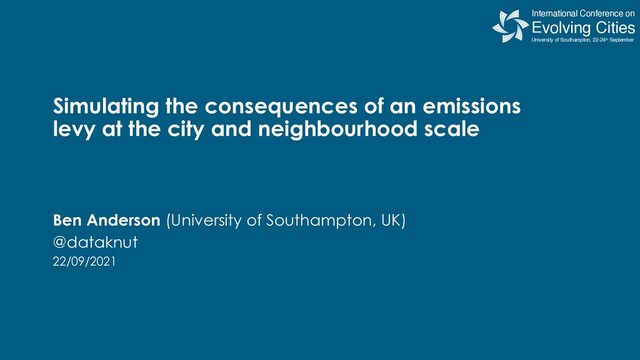 University of Southampton | www.energy.soton.ac.uk | @EnergySoton Organised by International Conference on EVOLVING CITIES University of Southampton SEPT 22-24 #ICEC2021