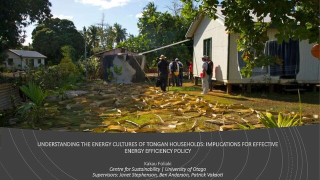 Kakau Foliaki, Janet Stephenson, Ben Anderson, and Patrick Vakaoti. ‘Understanding the Energy Cultures of Tongan Households: Implications for Effective Energy Efficiency Policy’. In 13th OERC and OCCNET Energy & Climate Change Symposium. Dunedin, New Zealand.