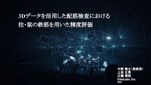 3D配筋検査ツール「Modely」を用いて検証 ◦ https://www.datalabs.jp/modely ◦ iPad Proや地上型レーザースキャナーなどを用いて取得した点群データを 3Dモデルに変換することで、配筋検査における検査項目 (鉄筋本数や鉄筋間隔等の値 )の実測値を自動で帳票化することが可能な Web アプリケーション。 ◦ NETIS登録番号 CB-230008-A: https://www.netis.mlit.go.jp/netis/pubsearch/details?regNo=CB-230008%20 ◦ 令和5年度インフラDX大賞においてスタートアップ奨励賞受 賞:https://www.mlit.go.jp/report/press/kanbo08_hh_001047.html Modely HPより抜粋 ダブル配筋 かぶり厚 鉄筋かご