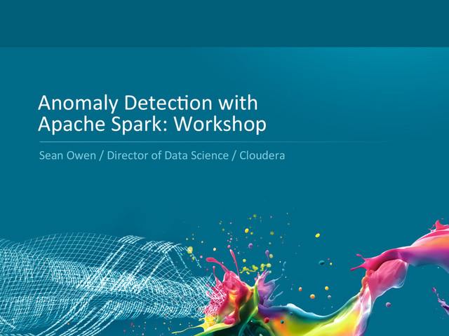 at textFile at <console>:15! ! rawData.count! ...! res1: Long = 4898431! ! rawData.take(1)! ...! res3: Array[String] = Array(0,tcp,http,SF, 215,45076,0,0,0,0,0,1,0,0,0,0,0,0,0,0,0,0,1,1,0.00,0.00,0. 00,0.00,1.00,0.00,0.00,0,0,0.00,0.00,0.00,0.00,0.00,0.00,0 .00,0.00,normal.)!