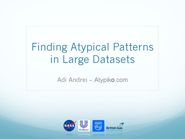 that could not be identified with existing methodology Other applications Unusual patterns of Out of Stock events Atypicalities in sales data Boiler sensor data