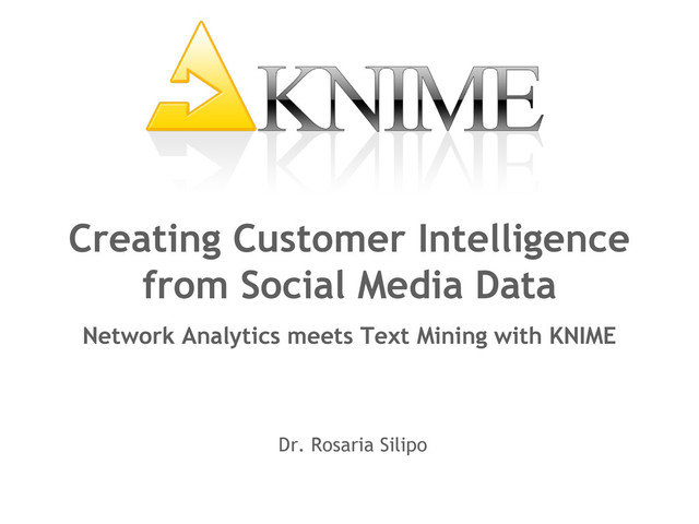 Data: www.knime.com - text mining - network mining - combined analysis (note the above 3 process huge data and require 16G memory) – clustering Open Source Software: KNIME www.knime.com 33