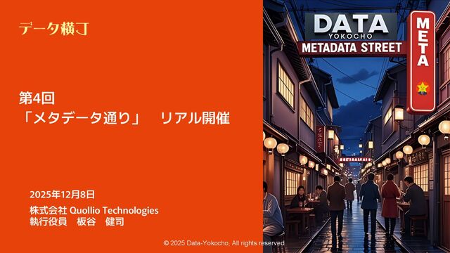 © 2025 Data-Yokocho, All rights reserved. 第4回 「メタデータ通り」 リアル開催 2025年12月8日
