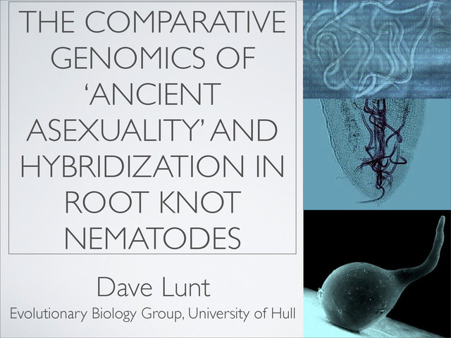 Dave Lunt JD Eisenback JD Eisenback juveniles enter root tip Evolutionary Biology Group, University of Hull davelunt.net @davelunt [email protected] @EvoHull +EvoHull +davelunt http://www.github.com/davelunt