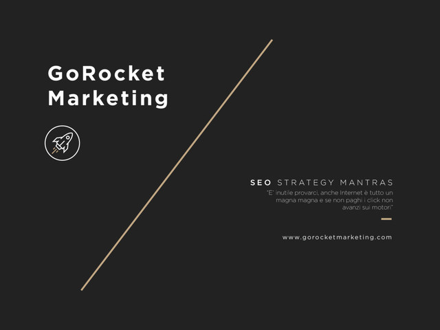 .co m S E O S T R A T E G Y M A N T R A S GoRocket Marketing “E’ inutile provarci, anche Internet è tutto un magna magna e se non paghi i click non avanzi sui motori”