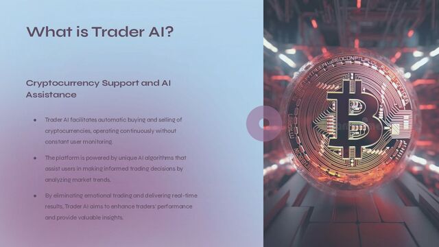 - Automatic Crypto Trading: Trader AI facilitates automatic buying and selling of cryptocurrencies, operating continuously without constant user monitoring.