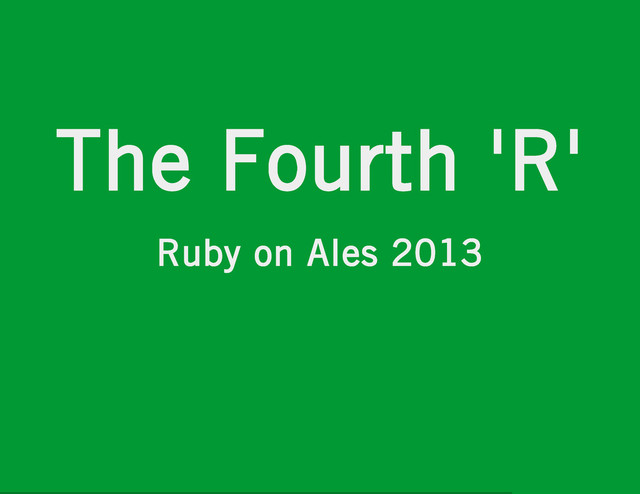 'The Three Rs' of Reading, Writing and Arithmetic have come to stand as the cornerstones of education in this country. We need to step into the 21st century and add a fourth R -- Programming. As a community of programmers and Ruby lovers, we should work to advocate Ruby as the fourth R.