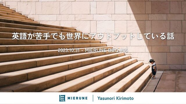 英語が苦手でも世界にアウトプットしている話 2023.10.31 - MIERUNE BBQ #05 Yasunori Kirimoto