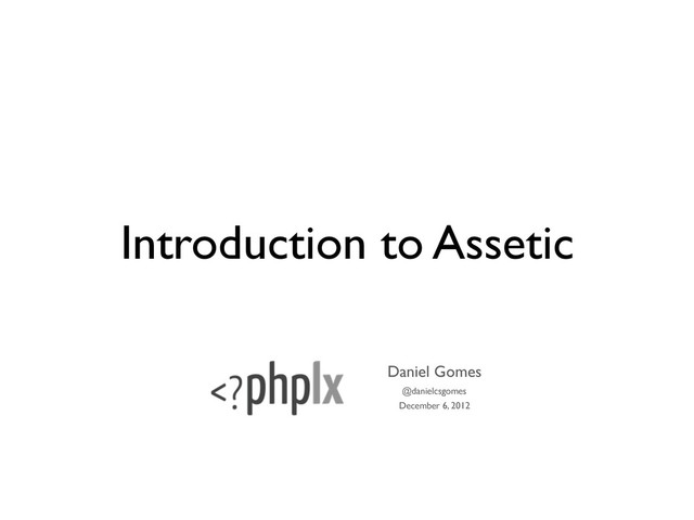 Assetic is an asset management framework for PHP 5.3, on this talk will explain the concepts and show how can you use it and take advantage of it.