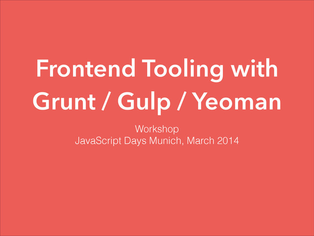 with built-in, commonly used tasks was the approach that would work best for me. Unfortunately, I couldn’t find a build tool that worked the way that I wanted. So I built one. — Ben Alman, 2012