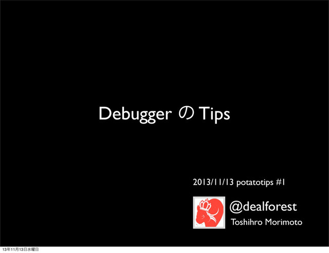 Debugger ͷ Tips @dealforest Toshihro Morimoto 2013/11/13 potatotips #1 1311݄13ਫ༵
