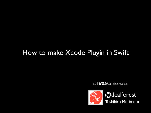 How to make Xcode Plugin in Swift 2016/03/05 yidev#22 @dealforest