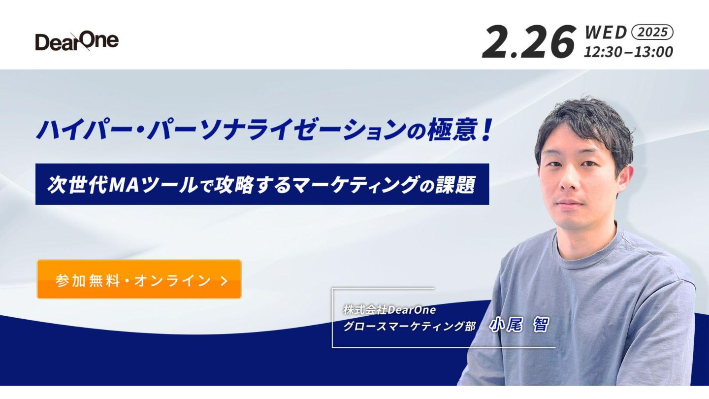 そこで今回のウェビナーでは、MAツールを活用し高度な施策を行う方法や最新トレンド『ハイパー・パーソナライゼーション』の事例をご紹介します。
