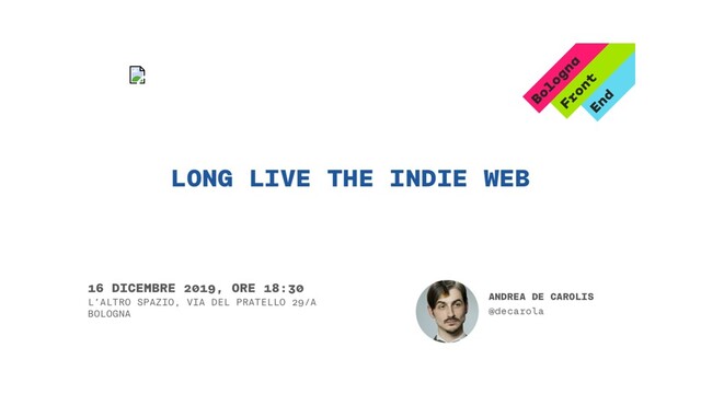 Talk liberamente ispirato da "Building Blocks of the Indie Web" di Jeremy Keith (santo subito - https://www.youtube.com/watch?v=VvYK-K0jWng )