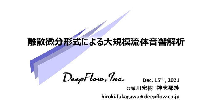 ω ͱॻ͘ɽۙ࡞༻ͷجૅํఔࣜ ∂ω(t, x) ∂t = f(ω(t, x), ω (t, x)) (1) ༩͑ΒΕΔɽࣜ (1) Λతʹղ͜͏ɽ࣌ؒ ࠁΈ෯ ∆t Ͱׂ͠ɼ࣌ؒͷΠϯσοΫεΛ ͱ͢ΔɽۭؒΛϝογϡׂ͠ɼׂཁૉΛ ͱݺͼɼID Λ n ͱ͢ΔɽࢄԽͨ͠ͷ ∗∗(m, n) Ͱද͢ɽCell n ͷۙʹ͋Δ Cell D Λ (n, i) ͱ͢Δɽi ≥ 0 ۙʹ͋Δ Cell ࢜Λ۠ผ͠ɼn = (n, 0) ͱ͢Δɽω (t, x) ͷ Γɼ u 1 ܗࣜͰ ͷ Cell χ ্ͷੵ (ධՁ χ, ω := ω ʹରͯ͠ੵΛฦ͢ χ∗ := χ, V ͷରۭؒ V ∗ ͷݩ ω∗∗ := evalω : ೋॏରۭؒ V ∗∗ ͷݩ ! (%, 1) (%, 2) %, 3 離散化 "∗∗ # + 1, ! = "∗∗ #, ! + (("∗∗ #, !, * Δt 陽解法 7 DeepFlow, Inc.