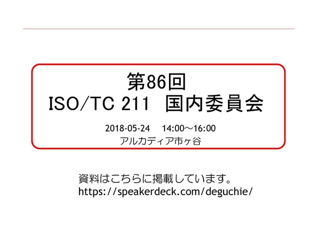 【概要】 本規格では、点・線・面及びそれらの集合といった単純な幾何をもつ地物 に関する地理情報へのアクセスを提供する共通アーキテクチャについて記 述している。また、その共通アーキテクチャ内で使用する用語を定義する。 【経緯】 • 2013年の定期見直し(SR)で、日本はRevise/Amend に投票した。結 果はConfirmだった(Revise/Amend: 5, Confirm: 22, Abstain: 6)。 • 2013年SR時の日本のコメント: “The contents which corresponding to ISO 19162 (Well known text representation of coordinate reference systems) should be removed.” “GIS vendors use their own logics for their services and softwares.” • 規格の内容は2013年SR時と同じなので(かつ、ISO19162は2015 年8月にISになっている)、今回もRevise/Amendへの投票とする。