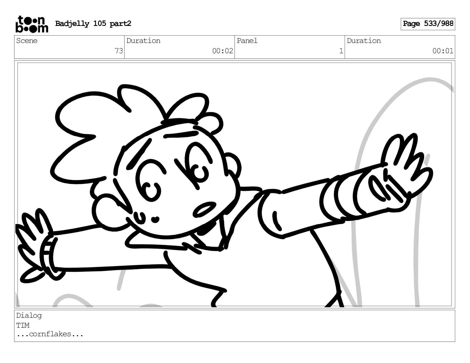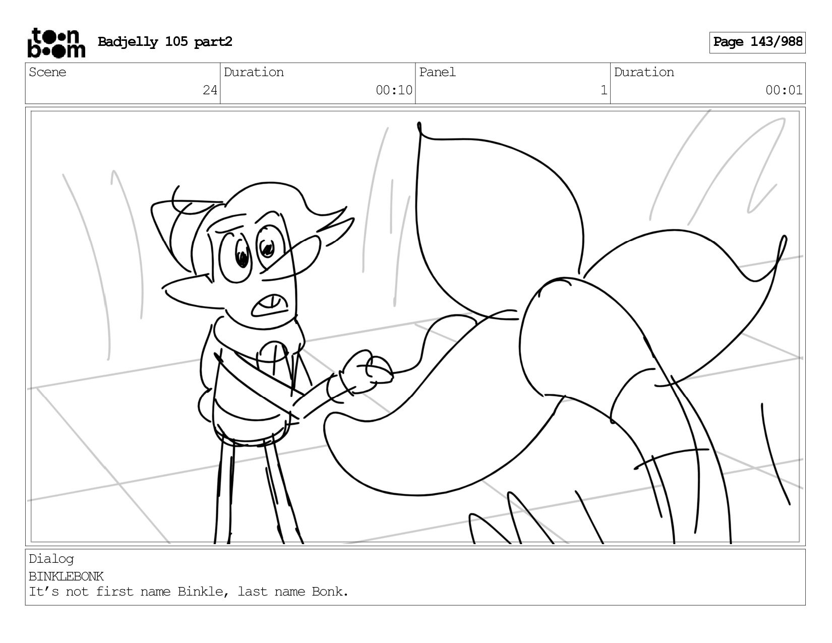 Scene 143 Duration 01:12 Panel 24 Duration 00:01 Dialog BADJELLY