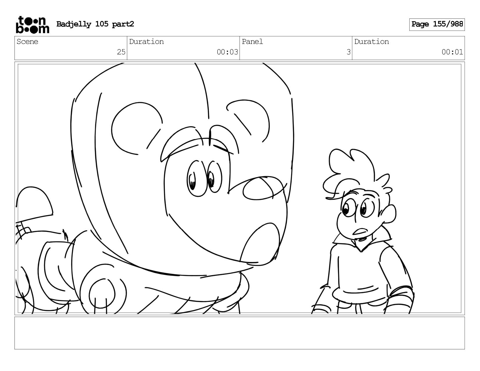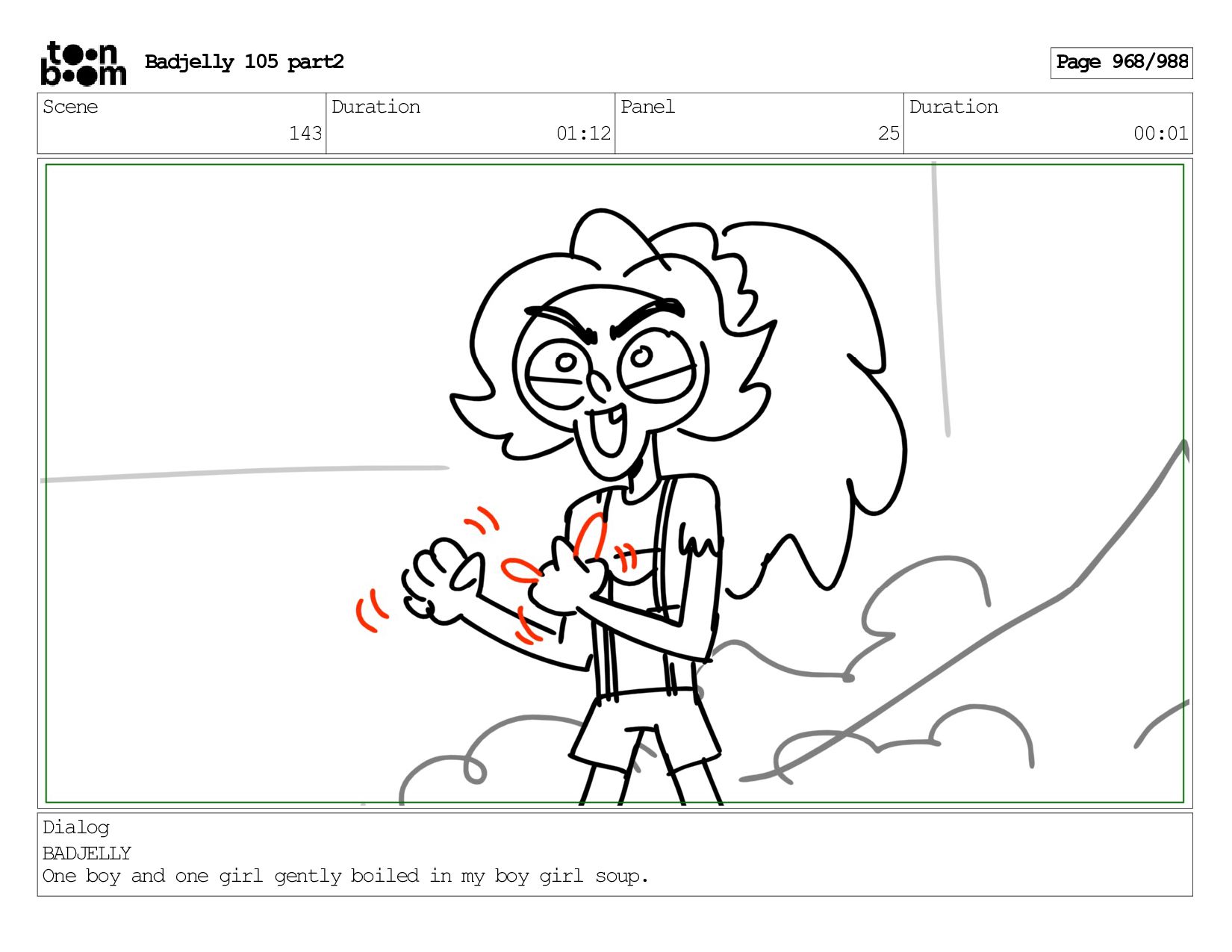 Scene 143 Duration 01:12 Panel 25 Duration 00:01 Dialog BADJELLY