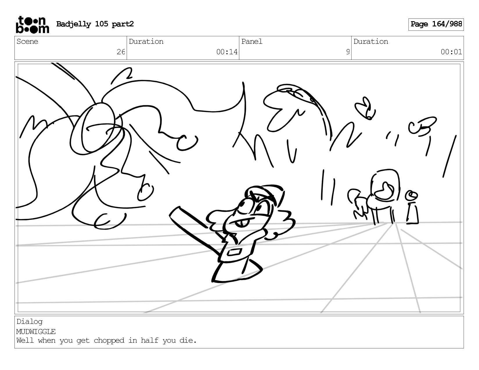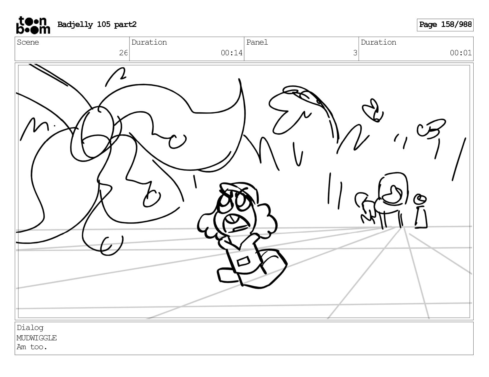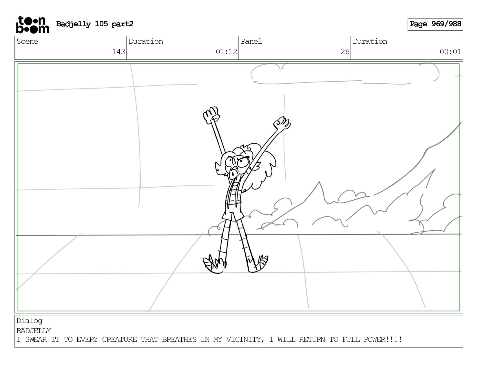 Scene 143 Duration 01:12 Panel 26 Duration 00:01 Dialog BADJELLY
