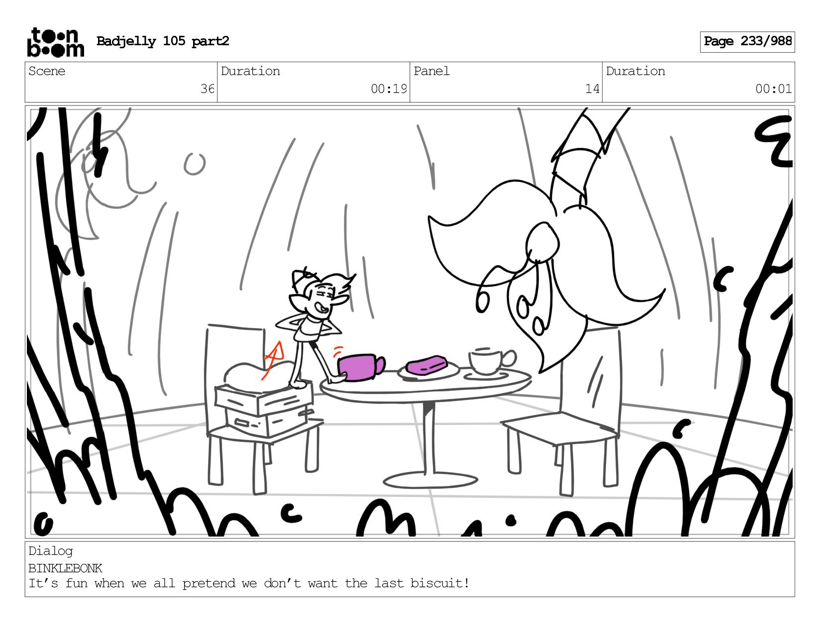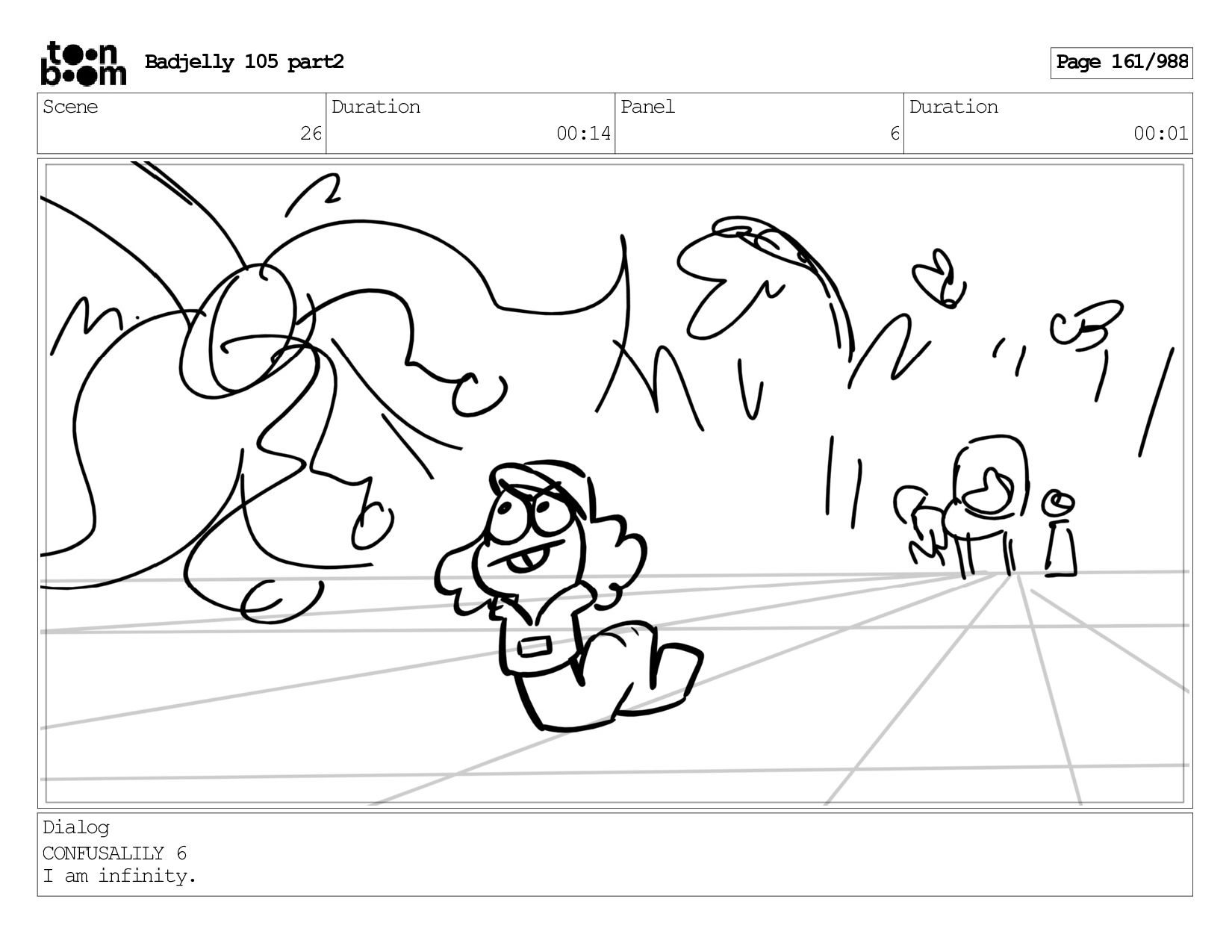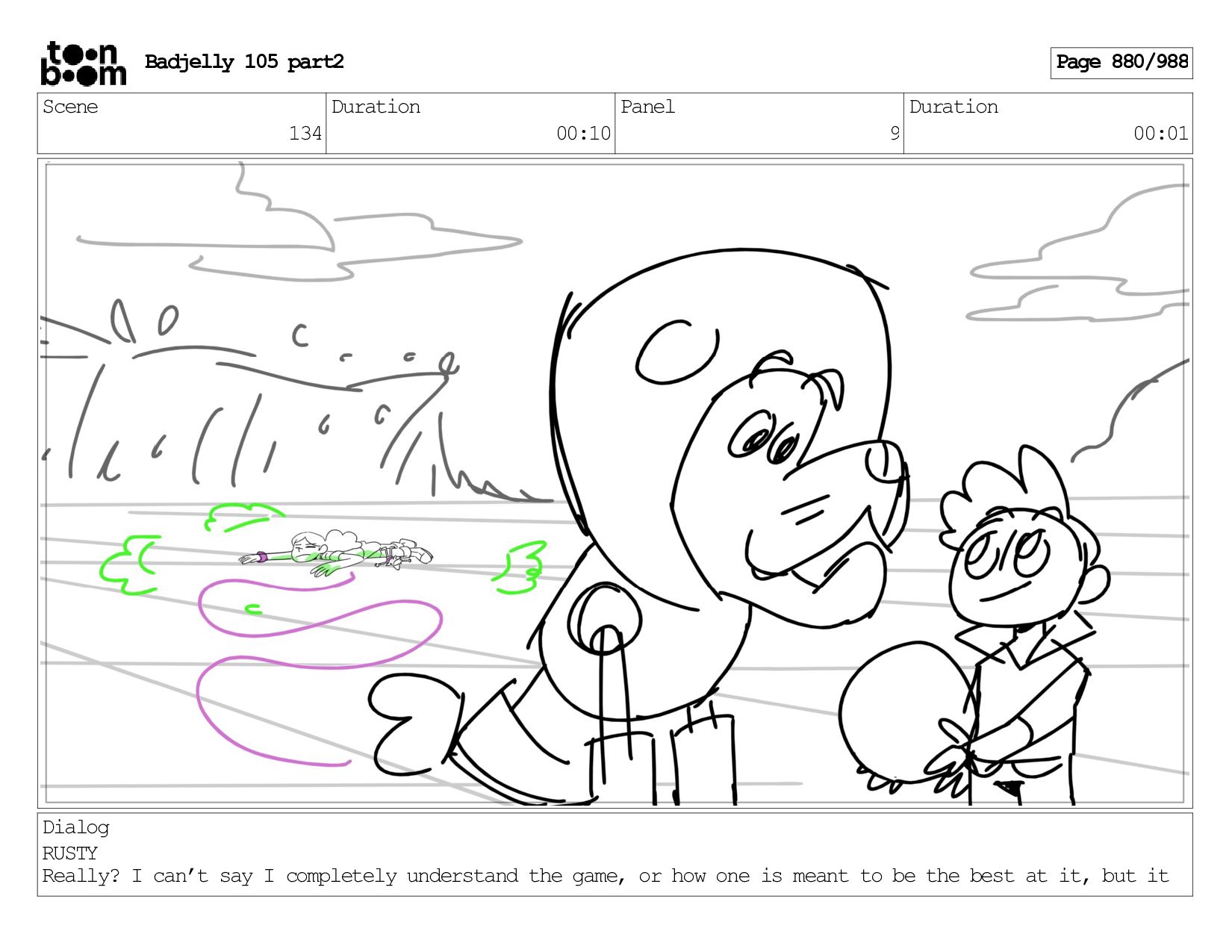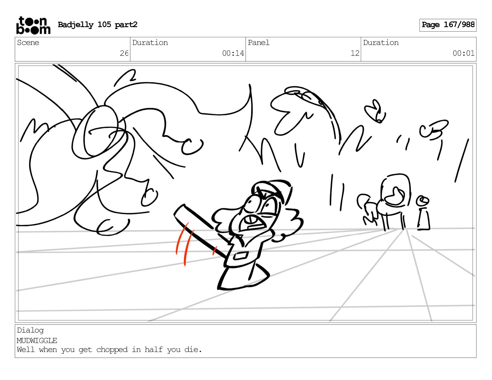 Scene 143 Duration 01:12 Panel 26 Duration 00:01 Dialog BADJELLY