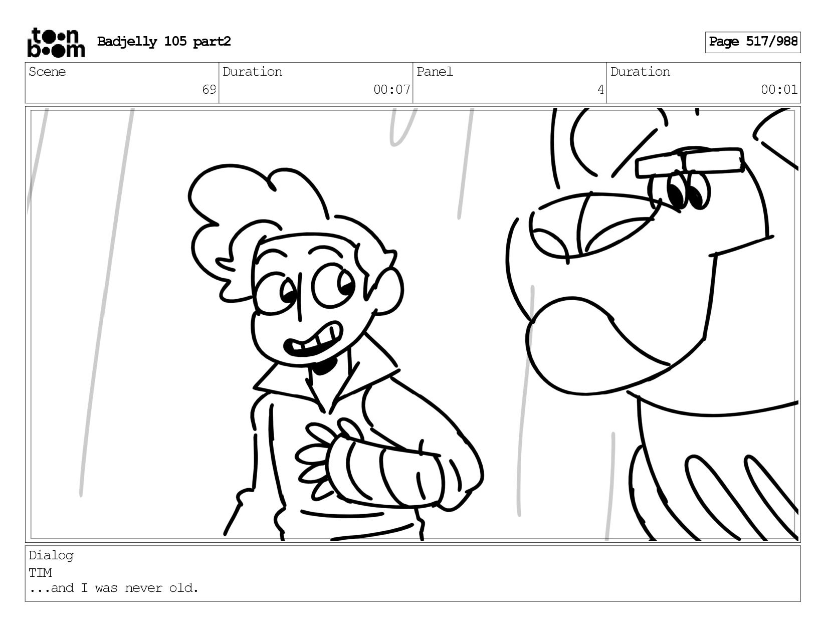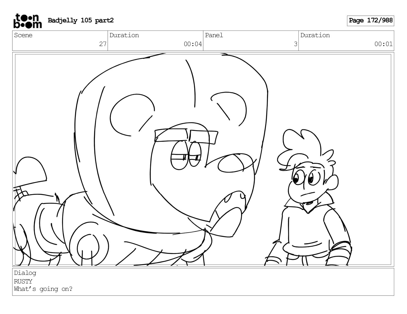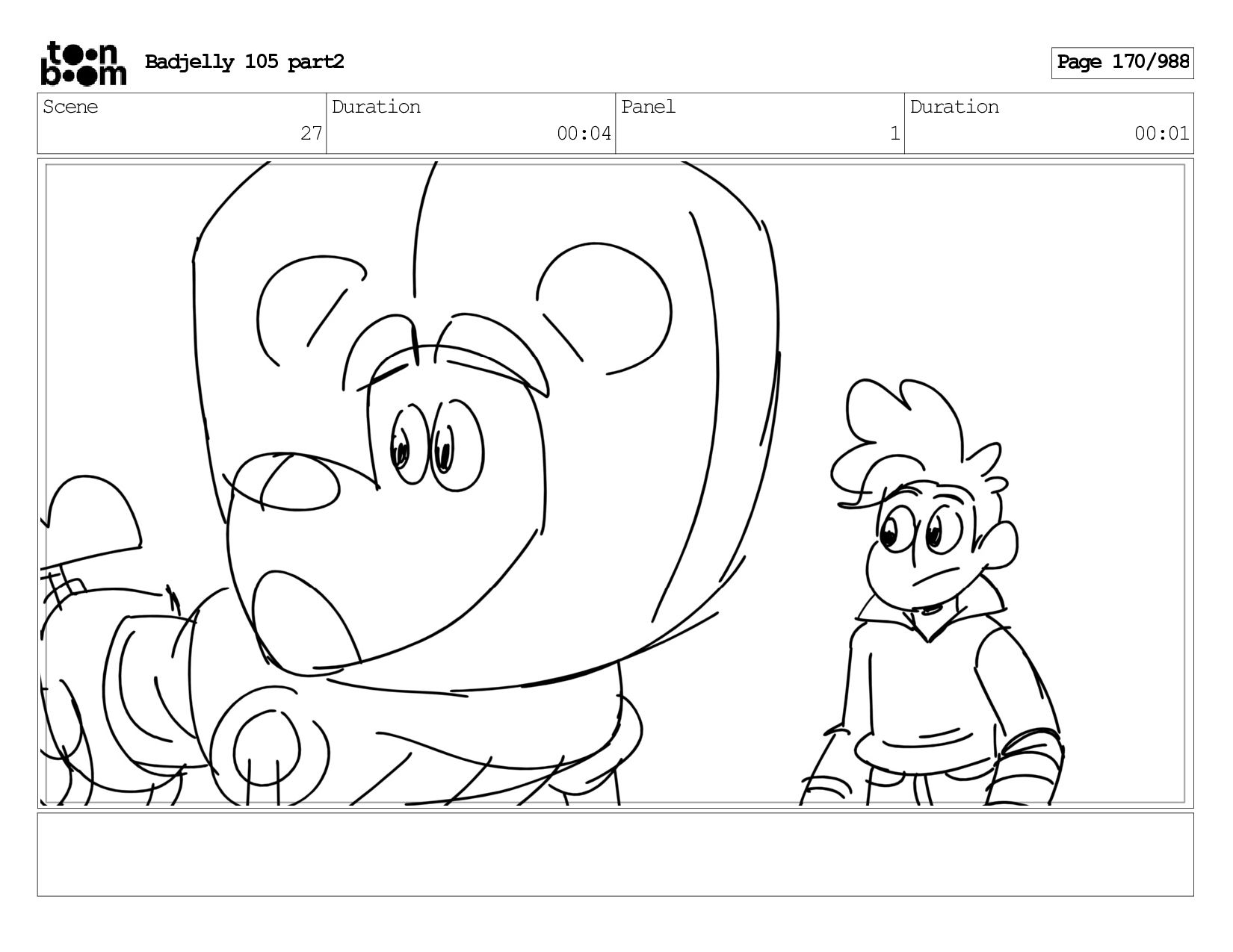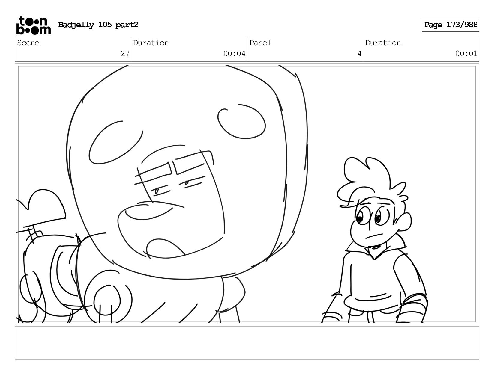 Scene 143 Duration 01:12 Panel 27 Duration 00:01 Dialog BADJELLY