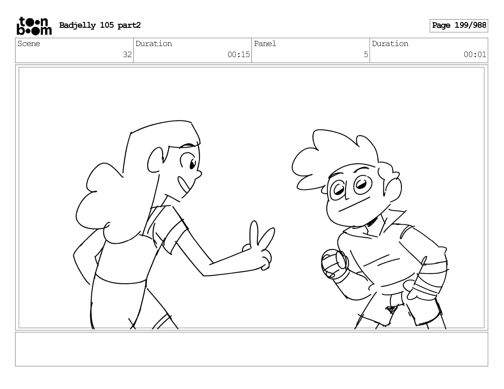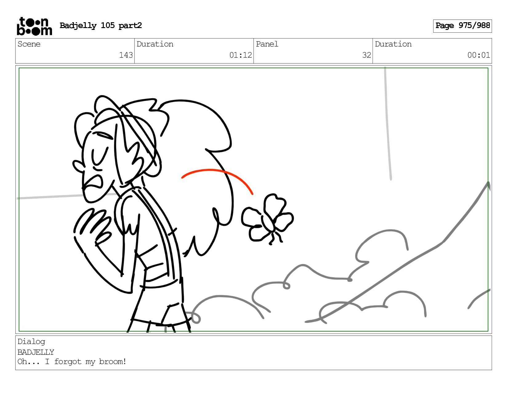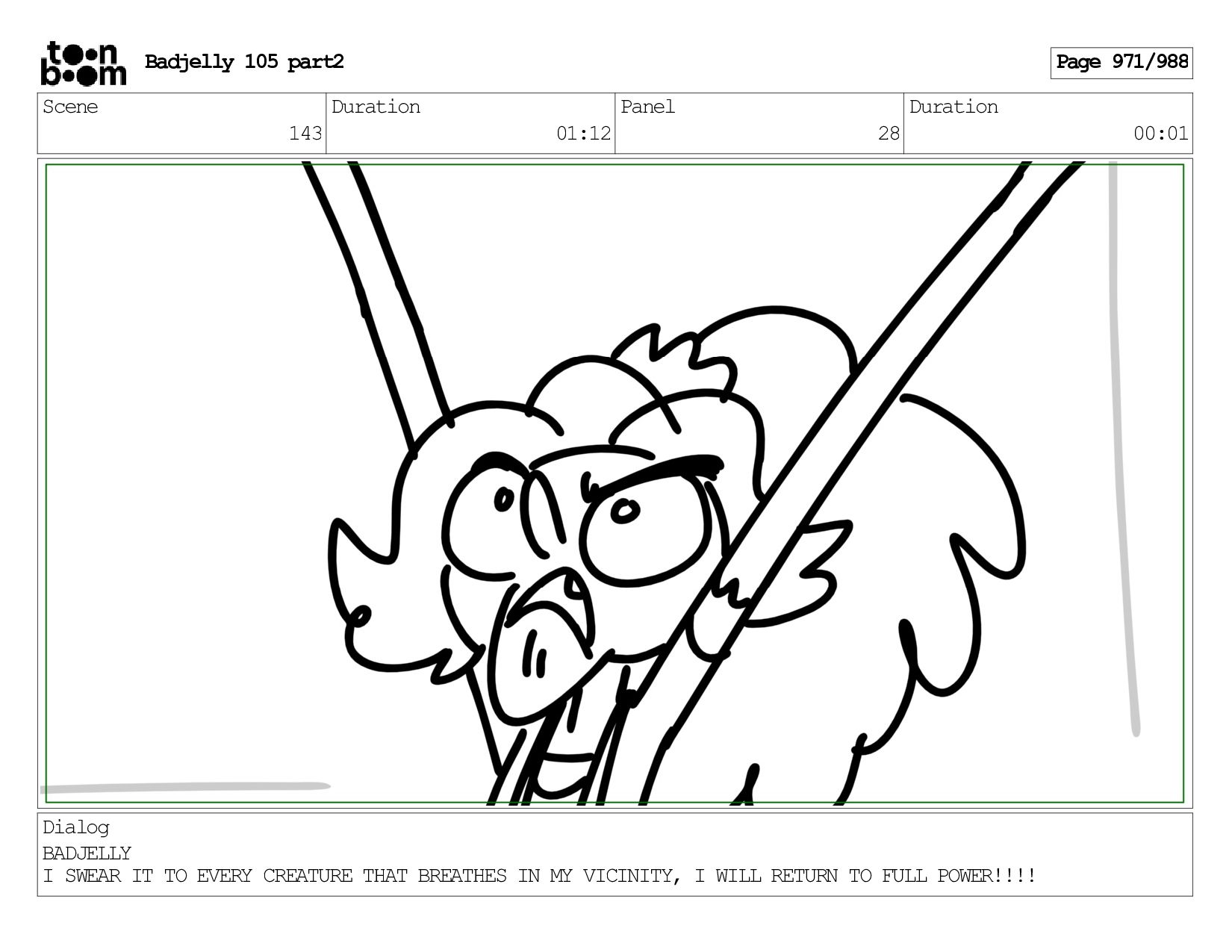 Scene 143 Duration 01:12 Panel 32 Duration 00:01 Dialog BADJELLY