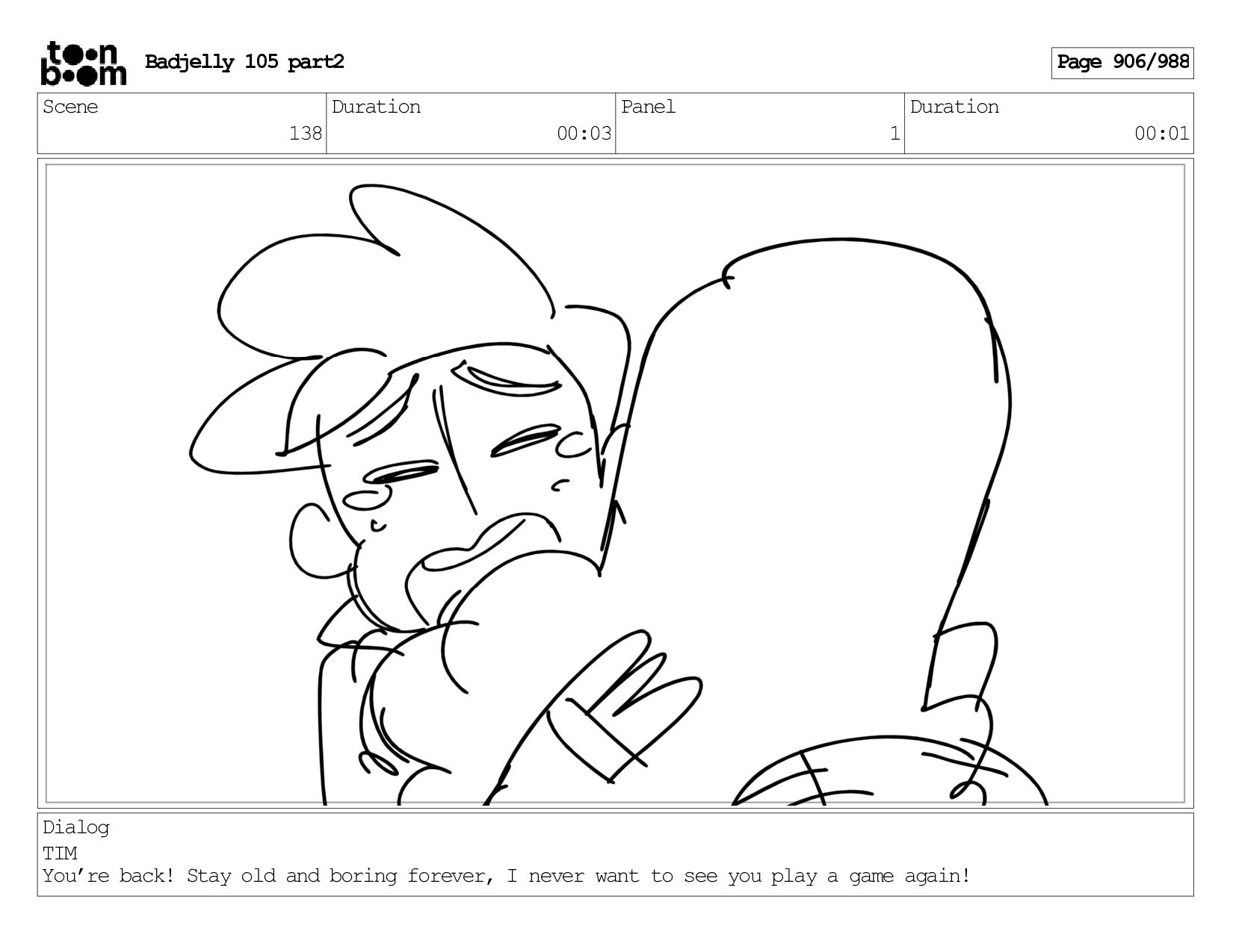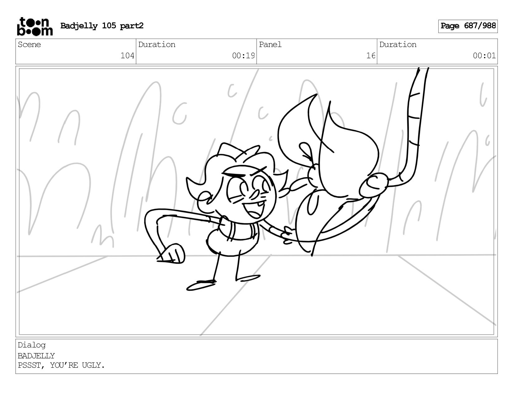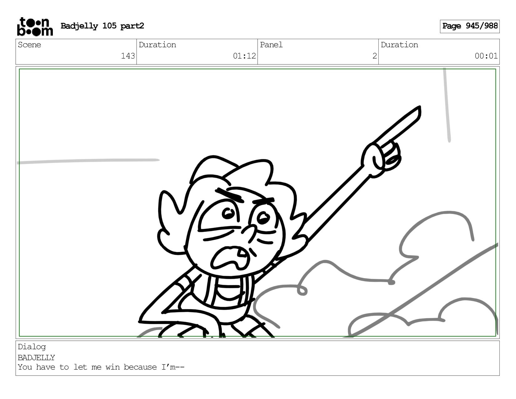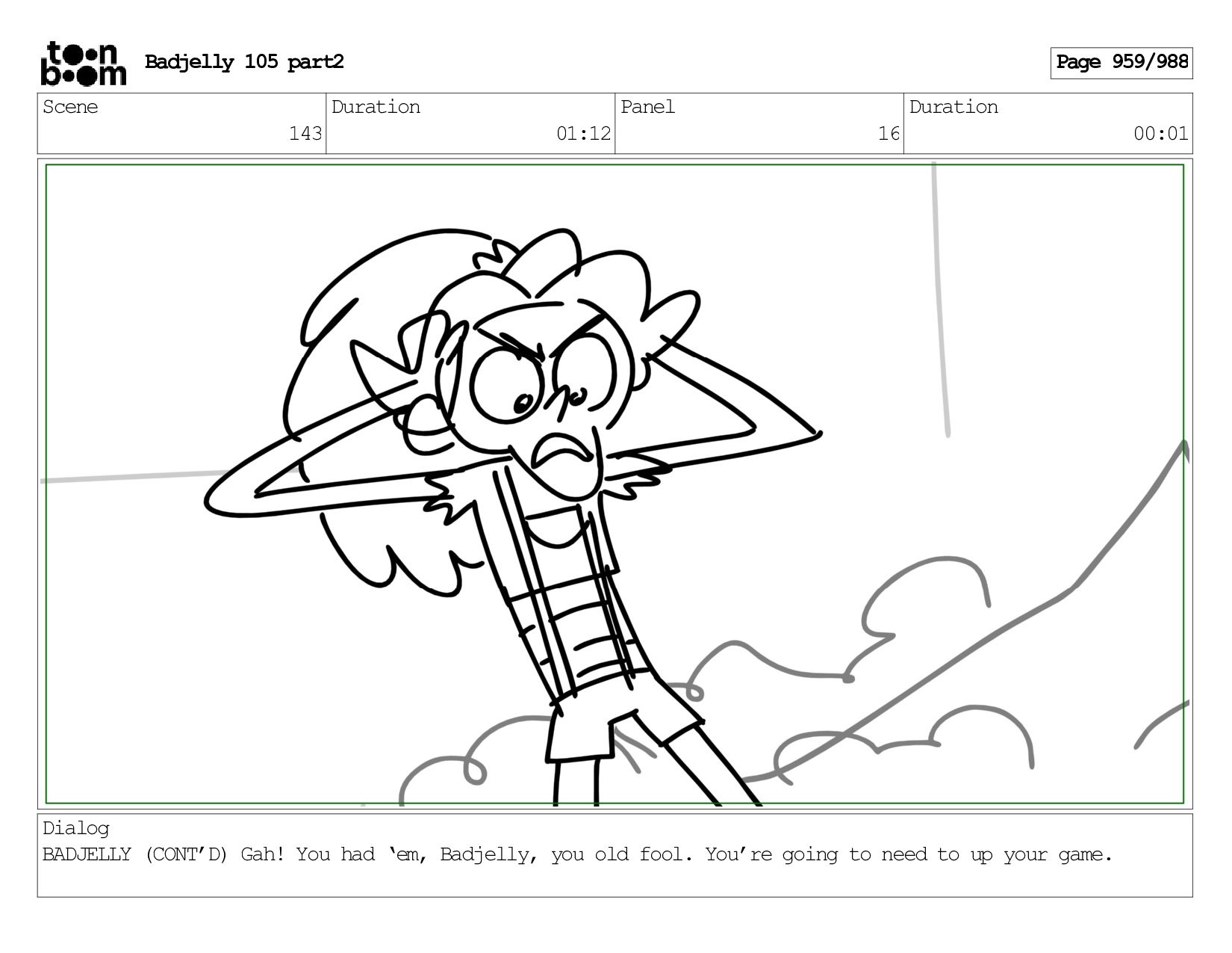 Scene 143 Duration 01:12 Panel 16 Duration 00:01 Dialog BADJELLY