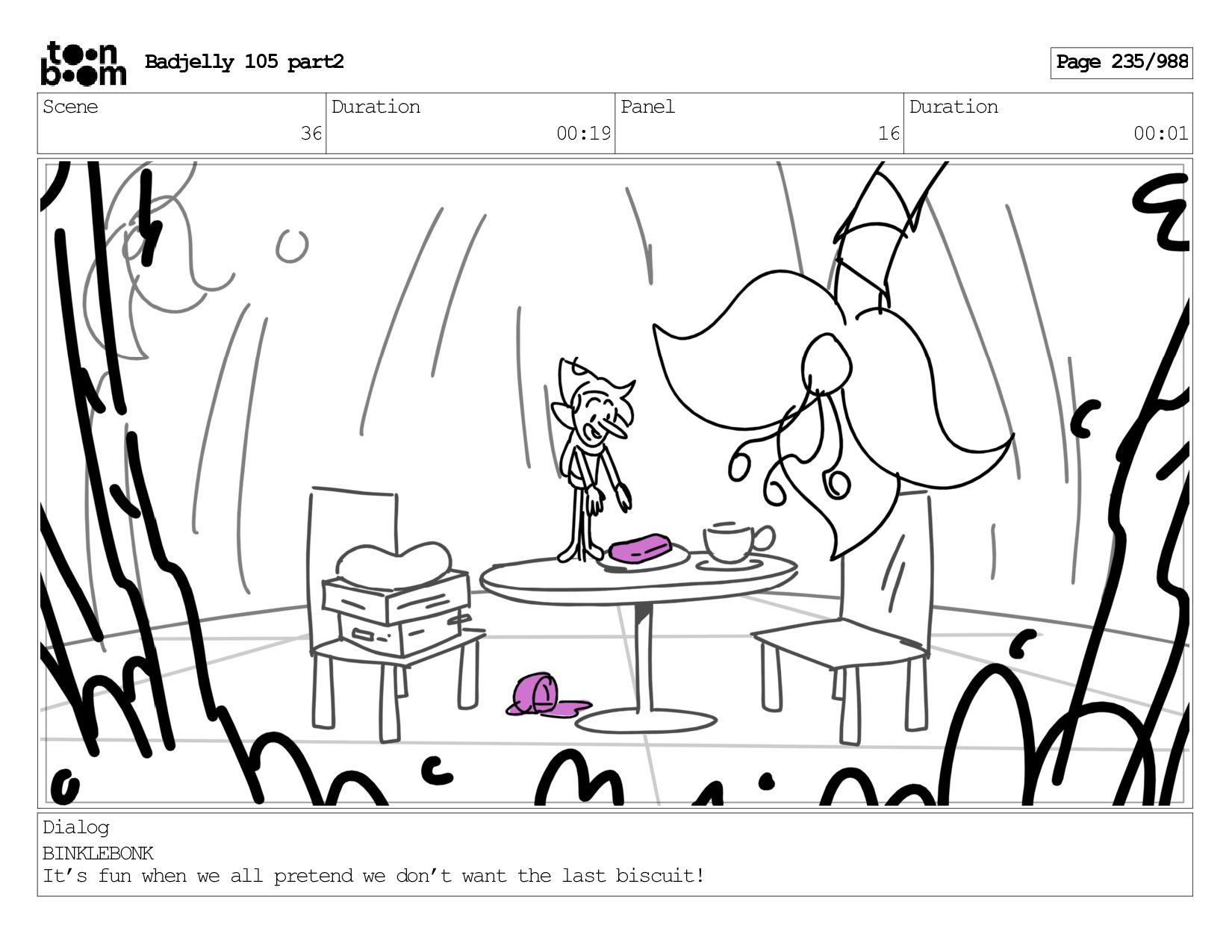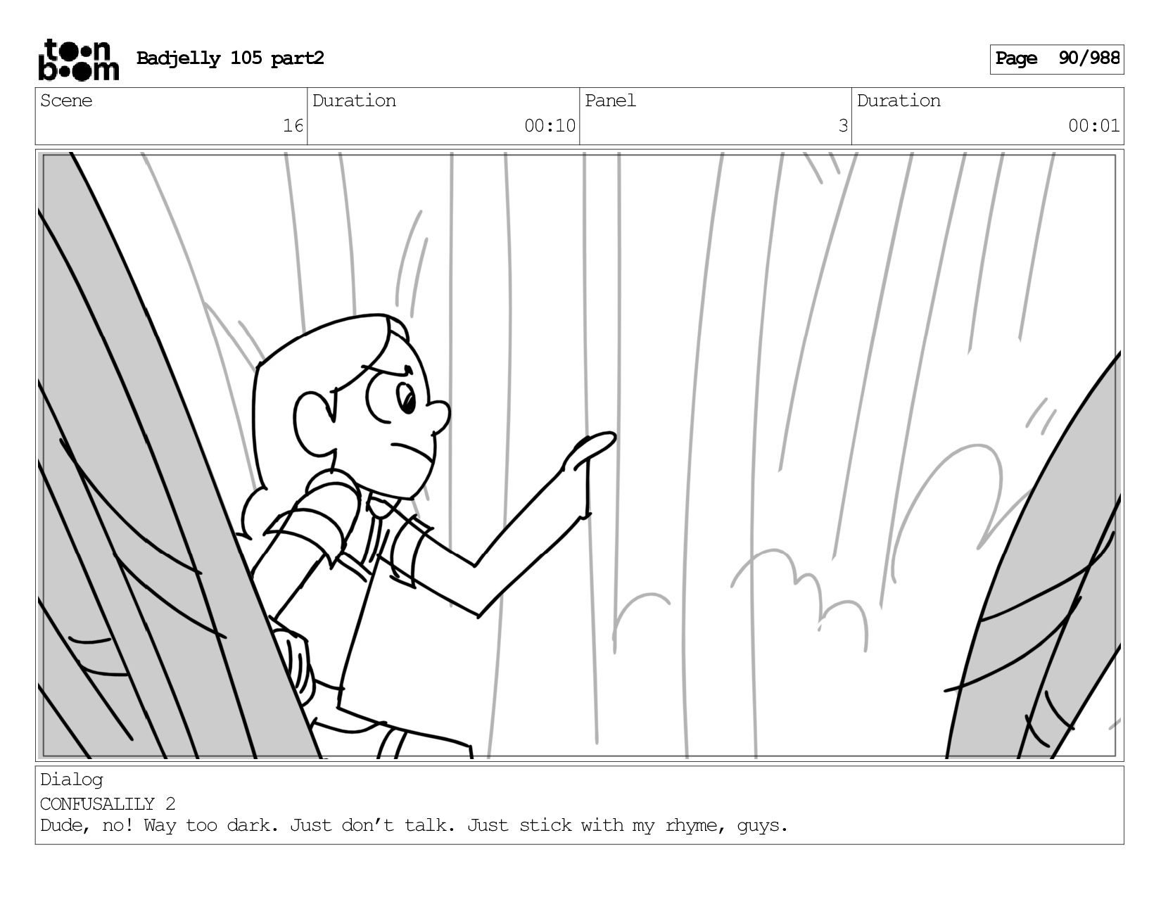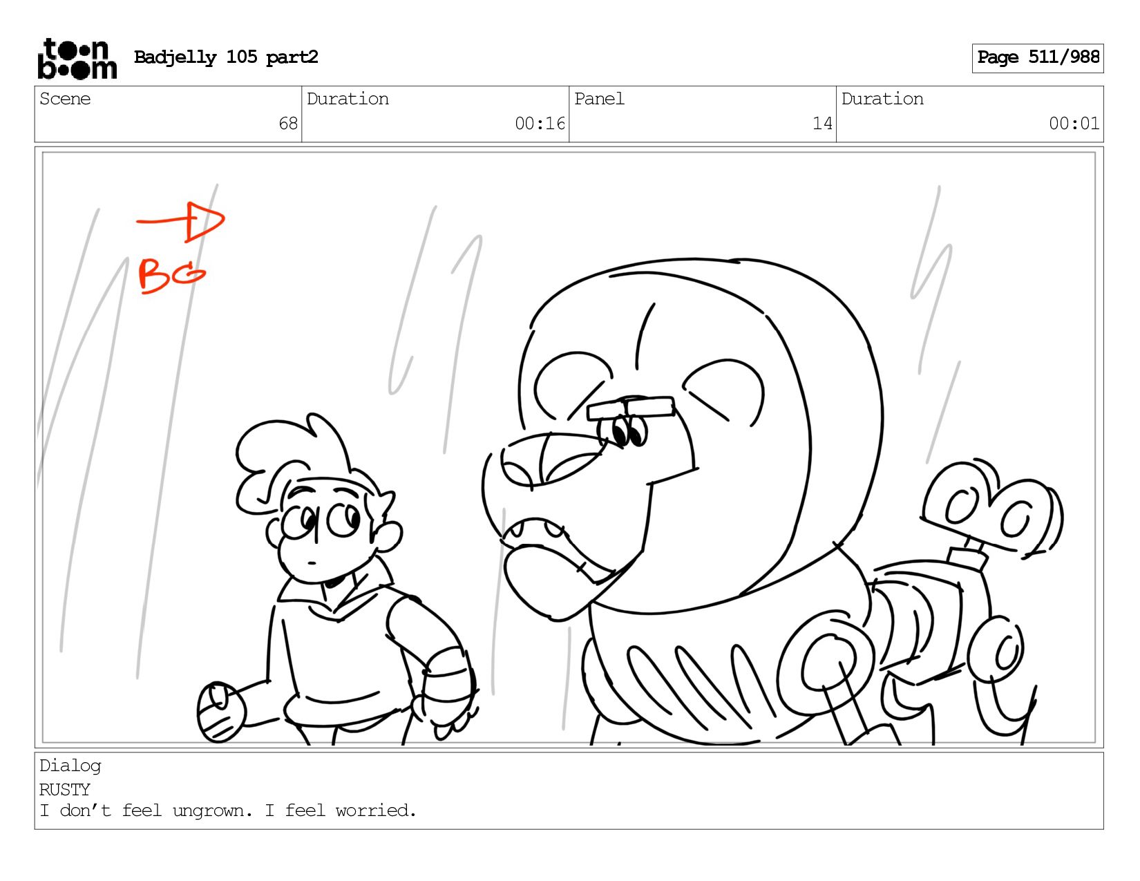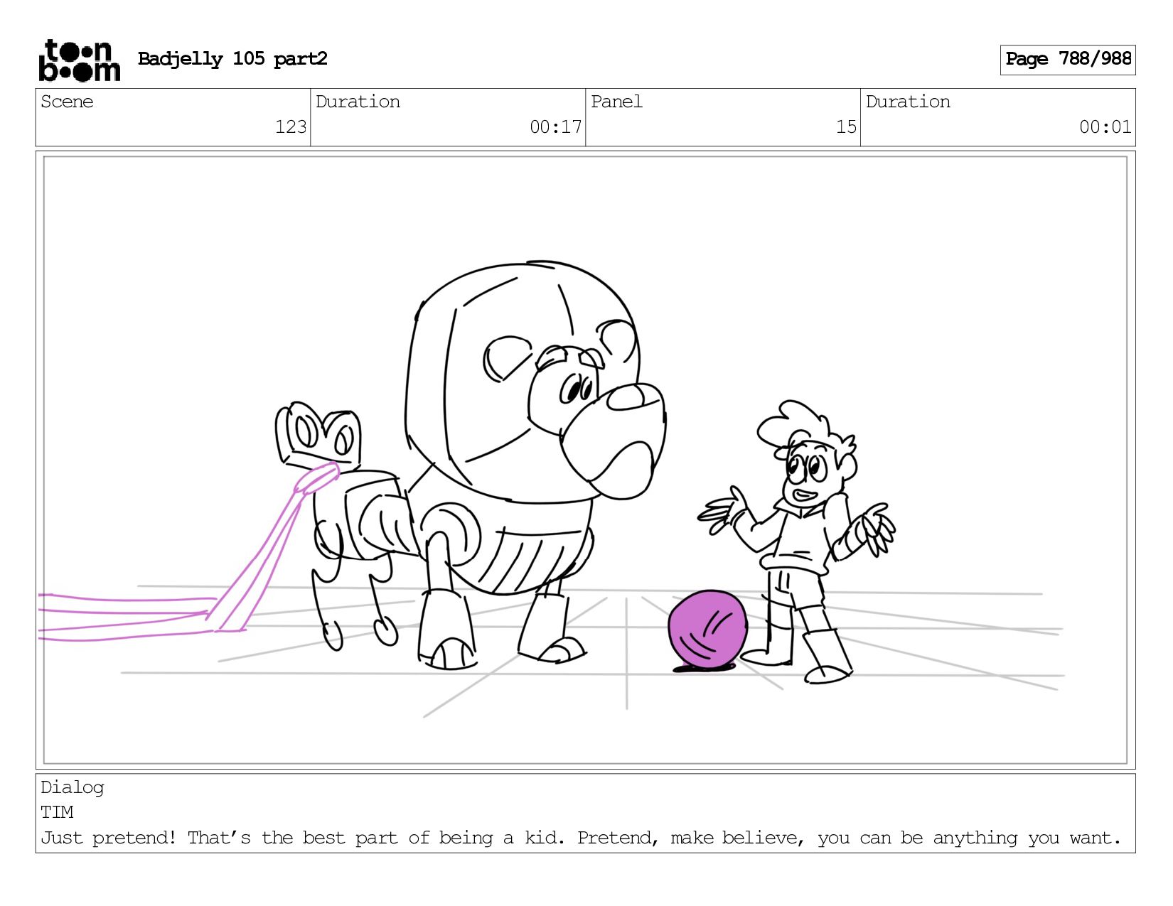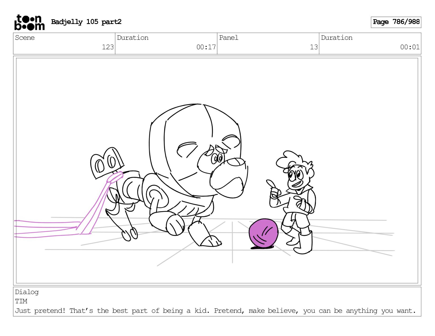Scene 143 Duration 01:12 Panel 16 Duration 00:01 Dialog BADJELLY