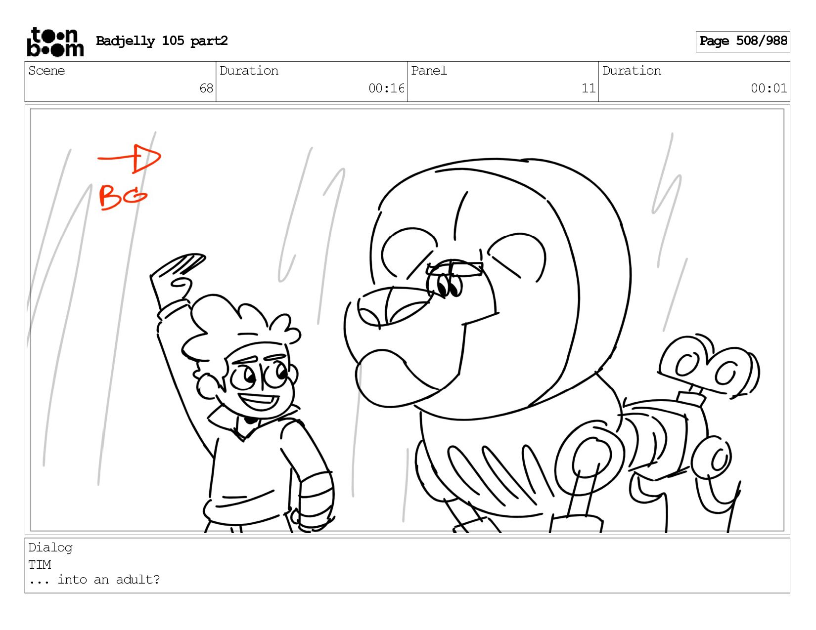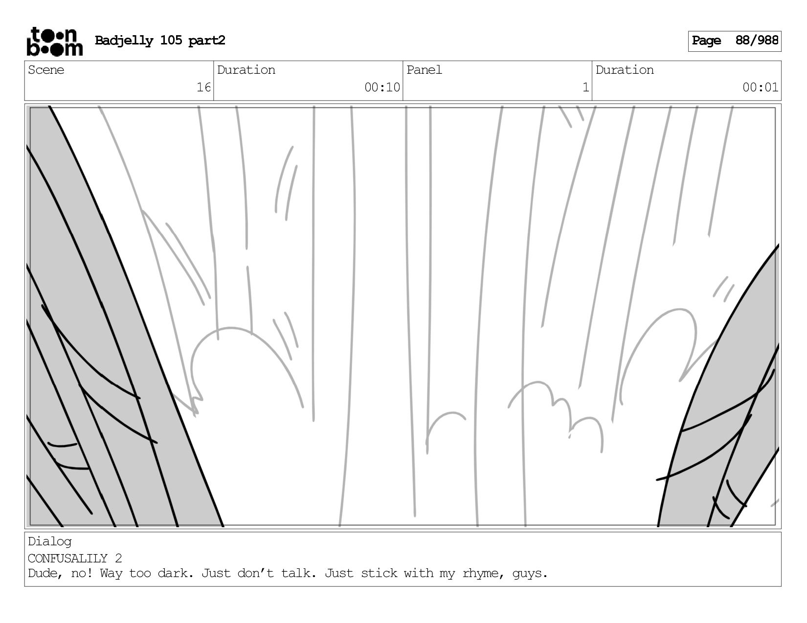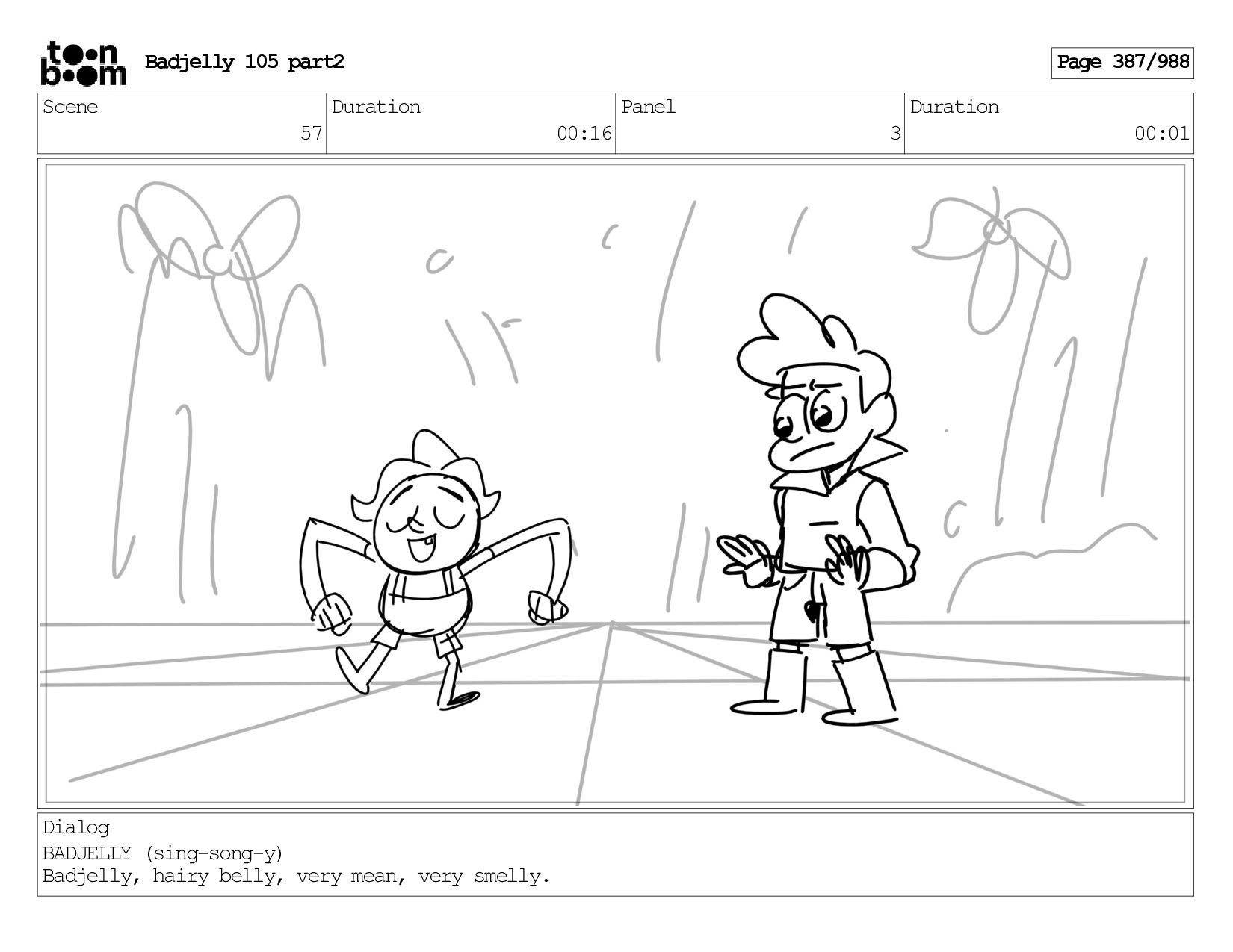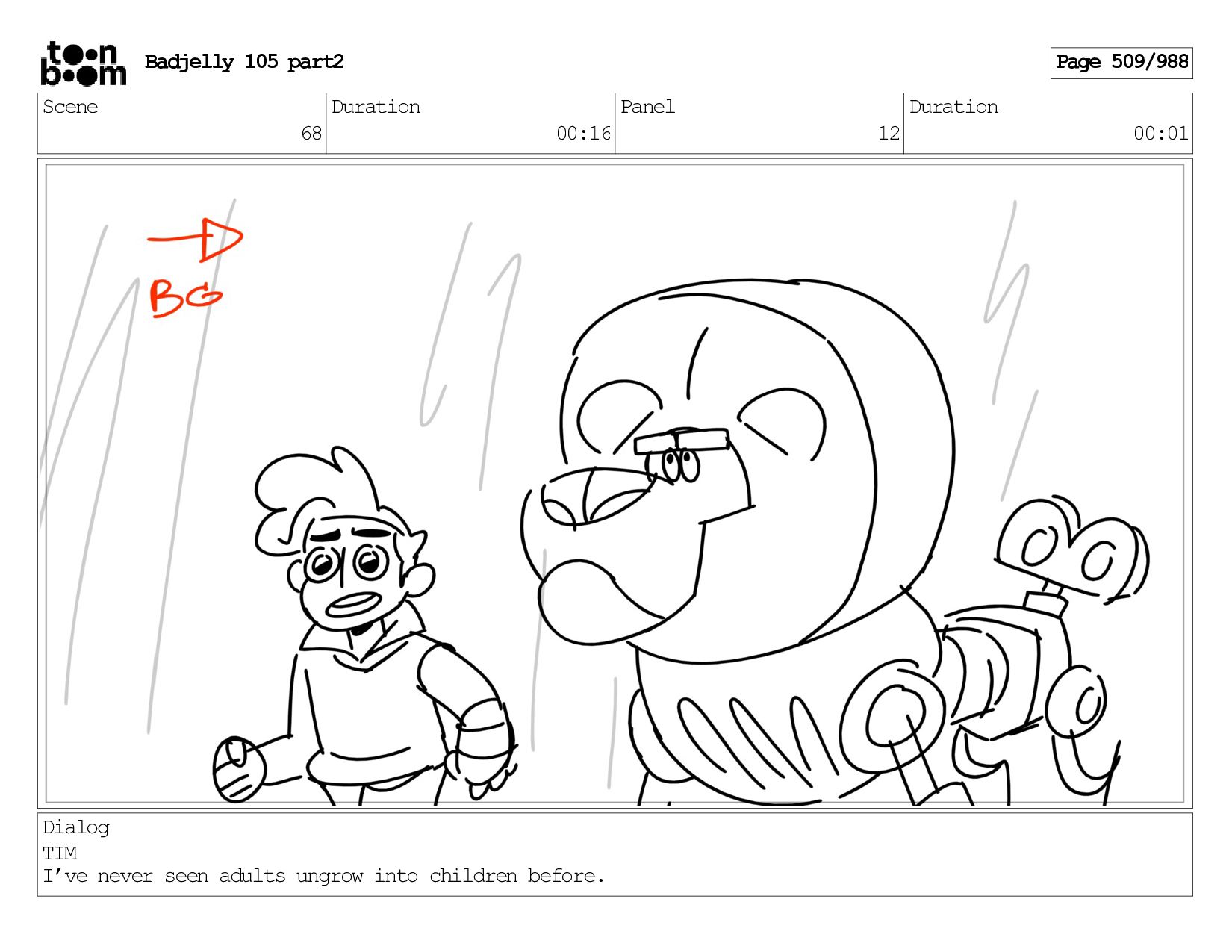 Scene 143 Duration 01:12 Panel 16 Duration 00:01 Dialog BADJELLY