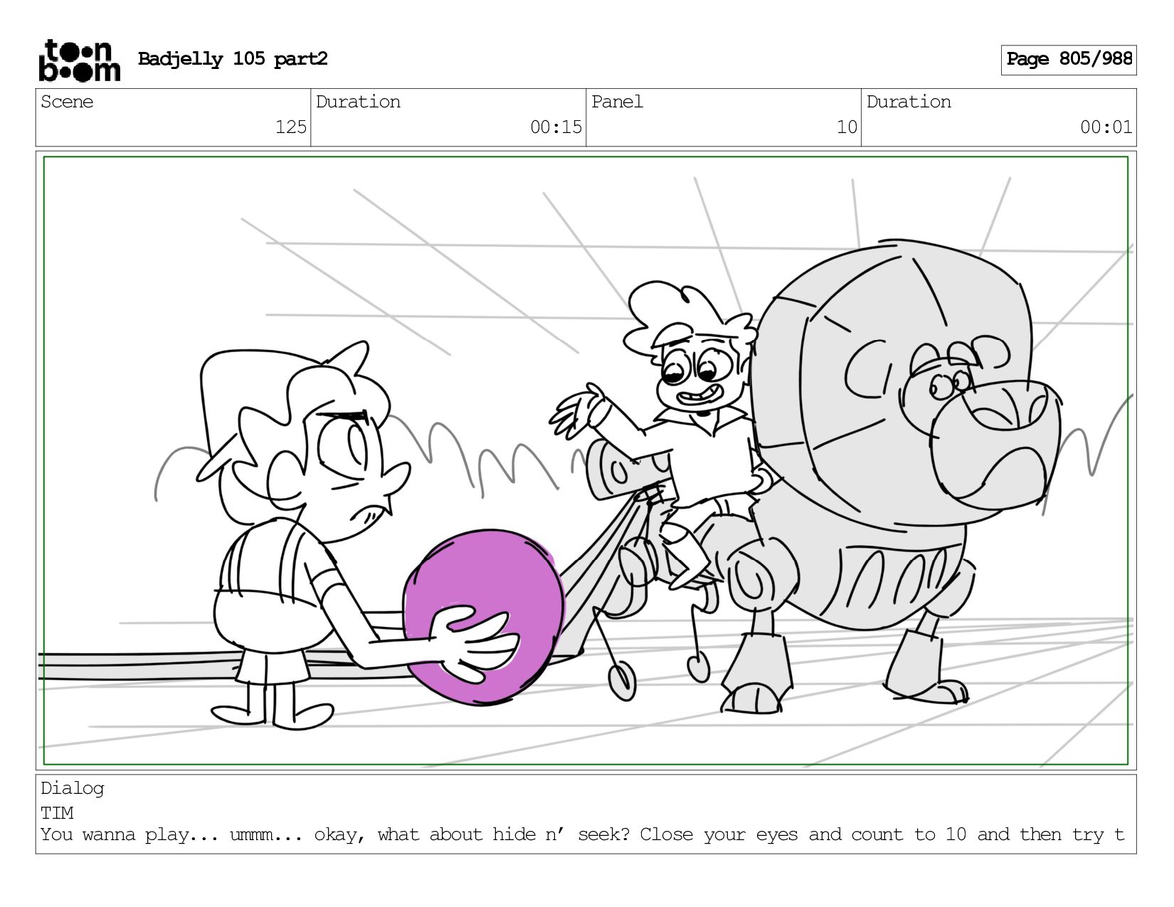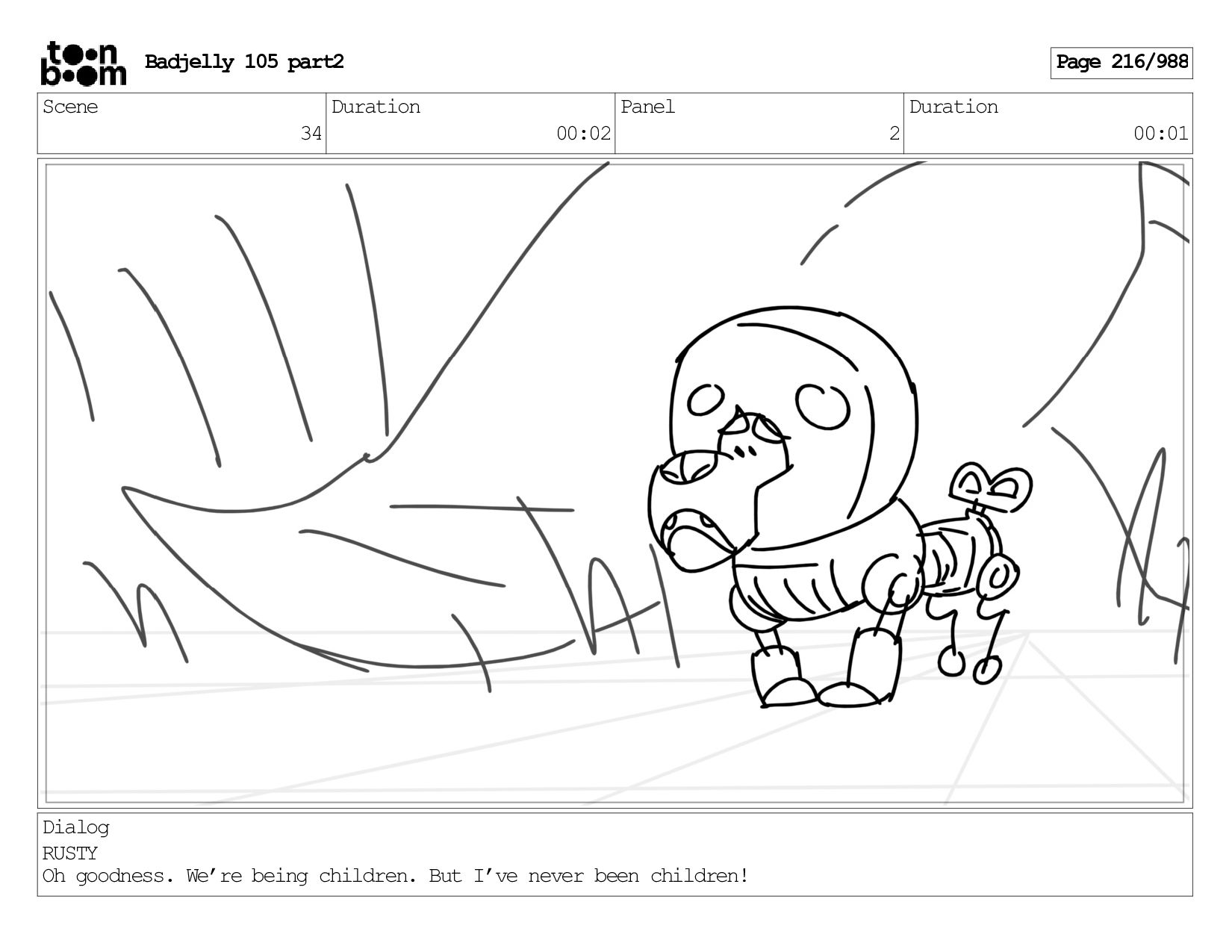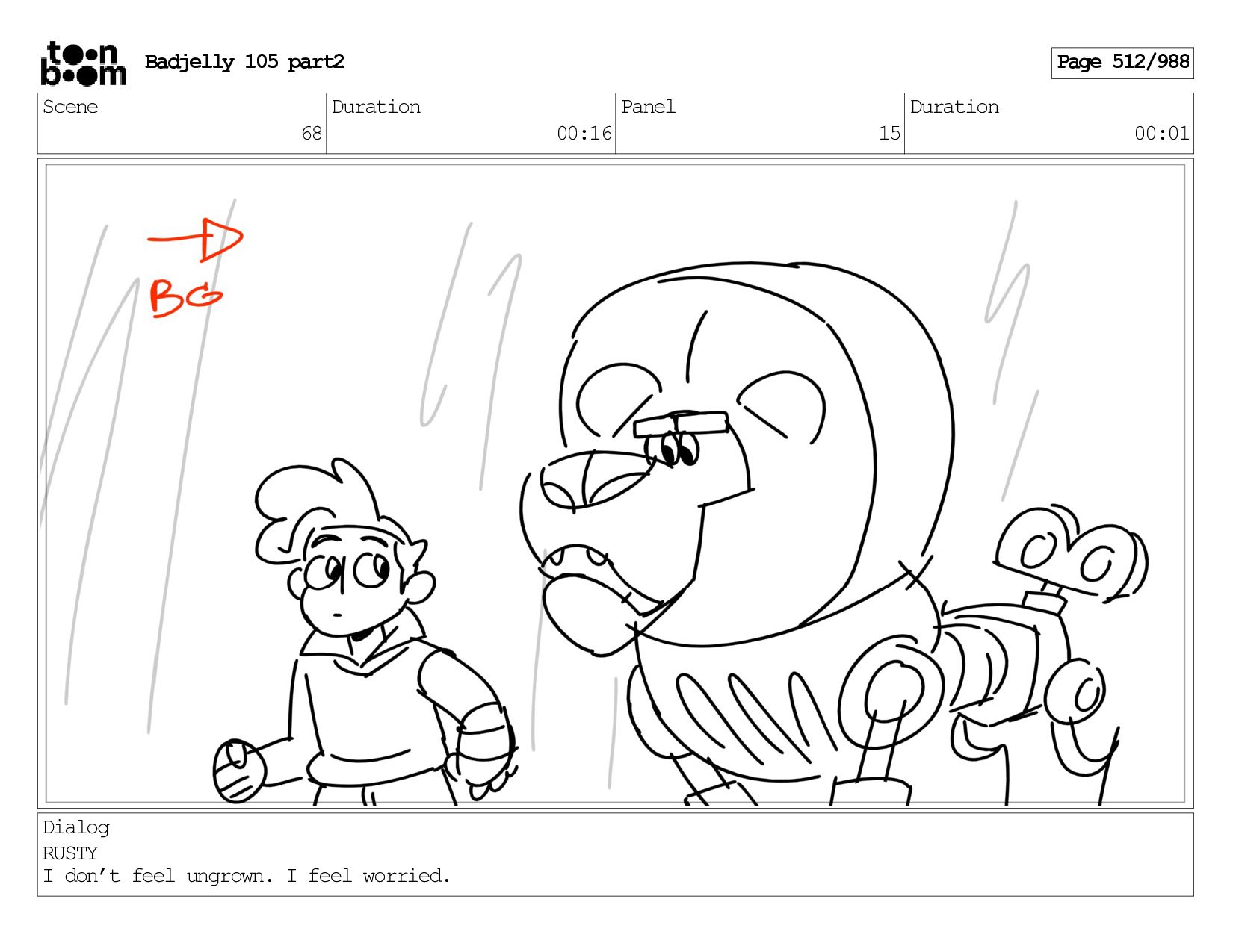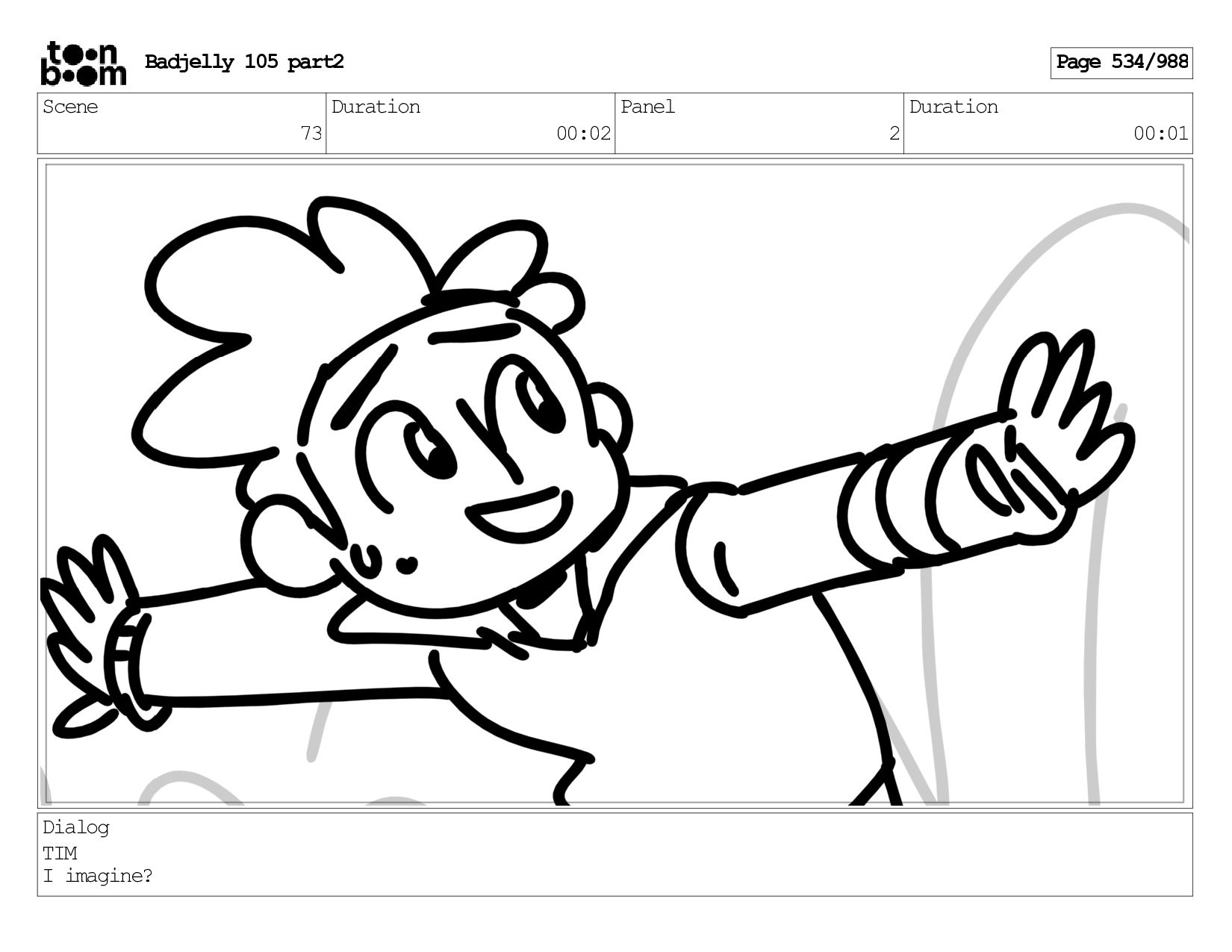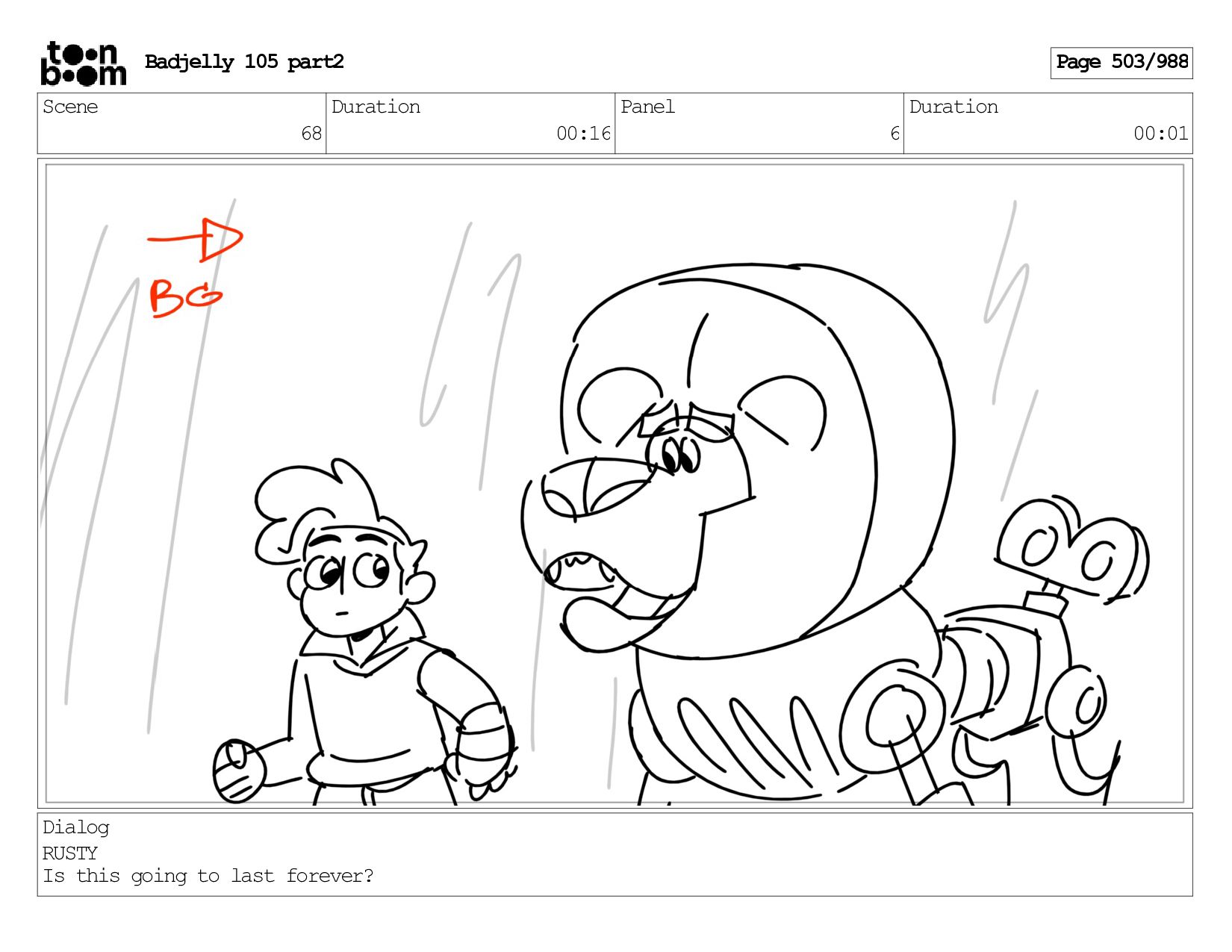 Scene 143 Duration 01:12 Panel 16 Duration 00:01 Dialog BADJELLY