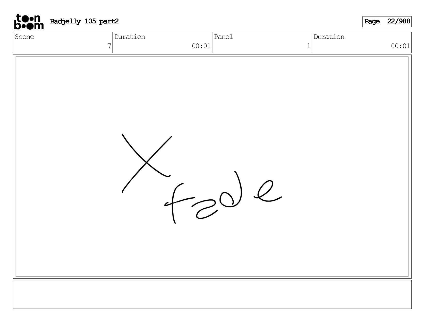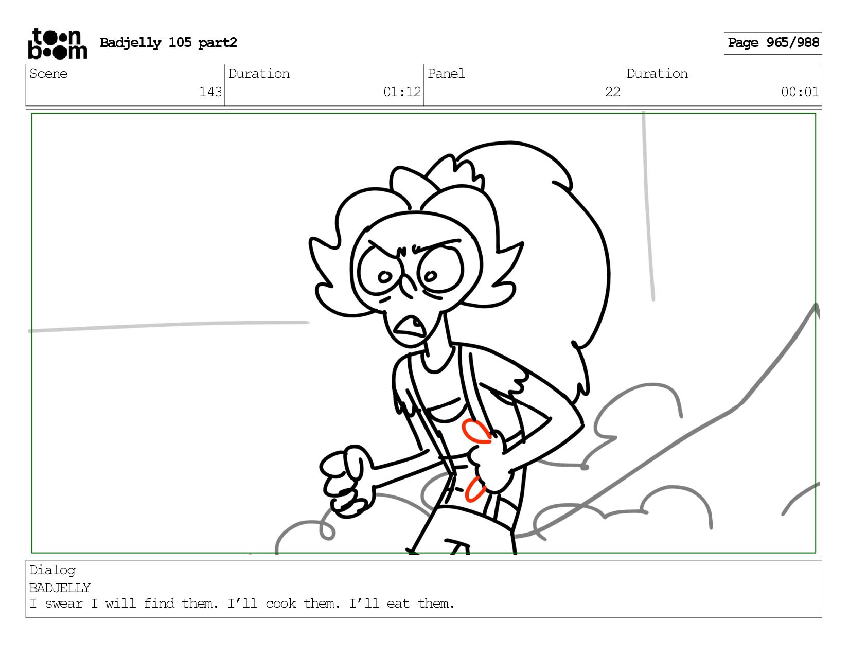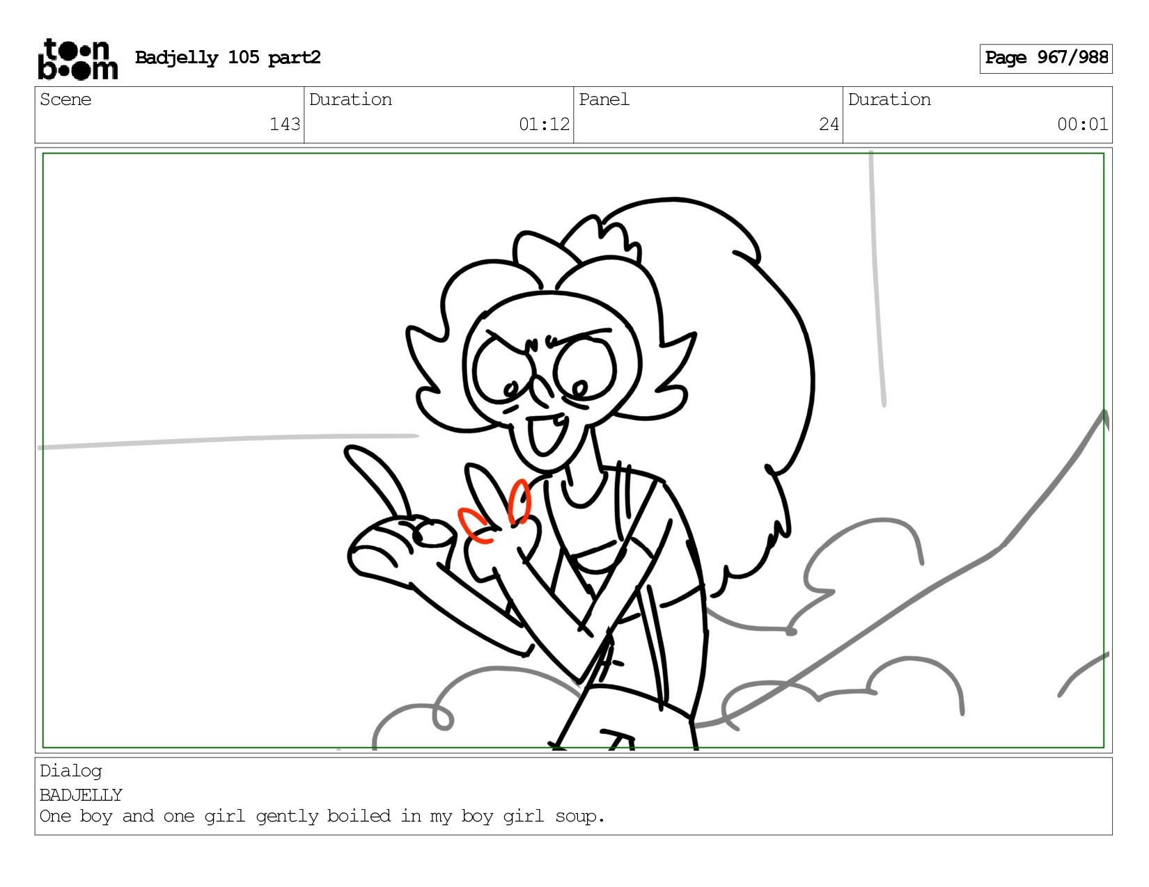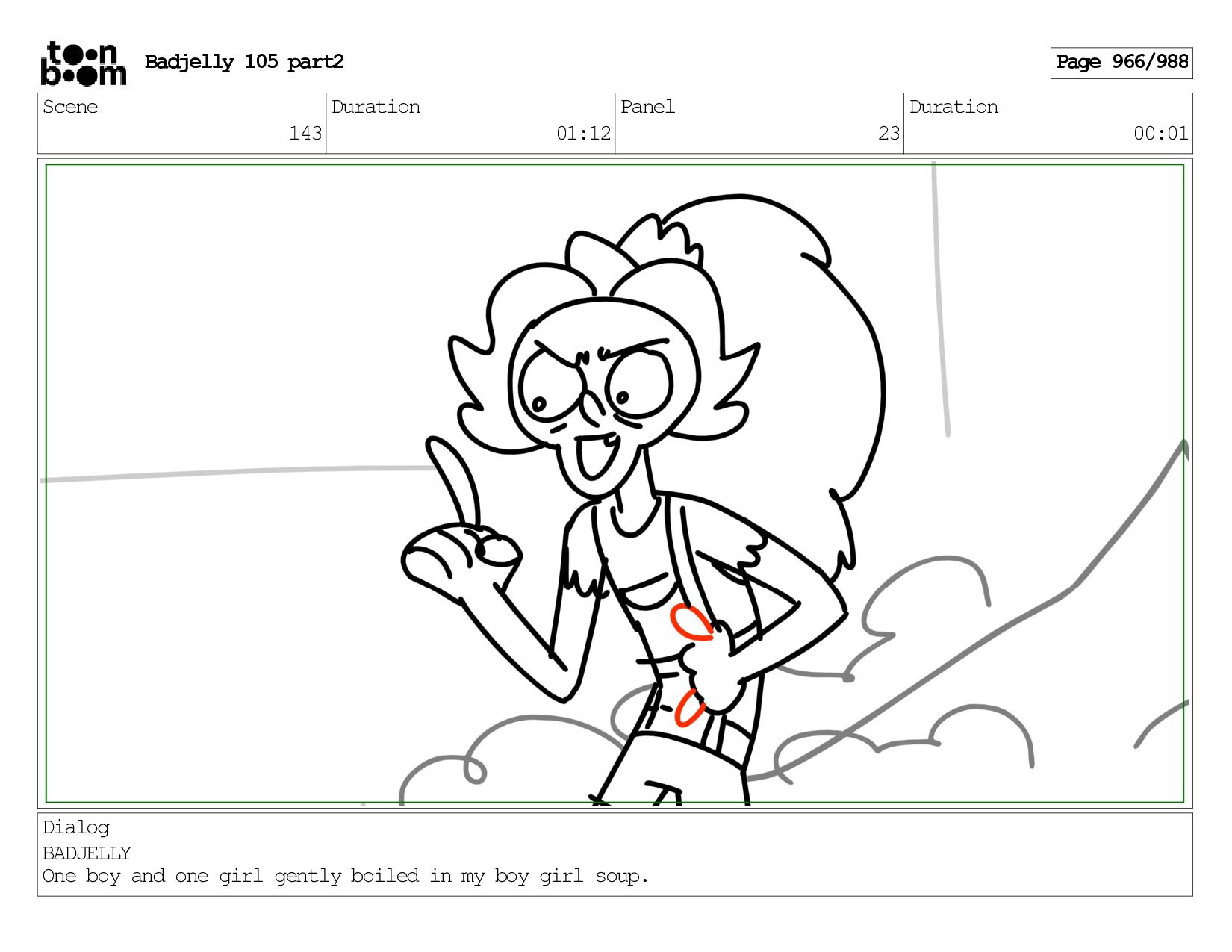 Scene 143 Duration 01:12 Panel 22 Duration 00:01 Dialog BADJELLY