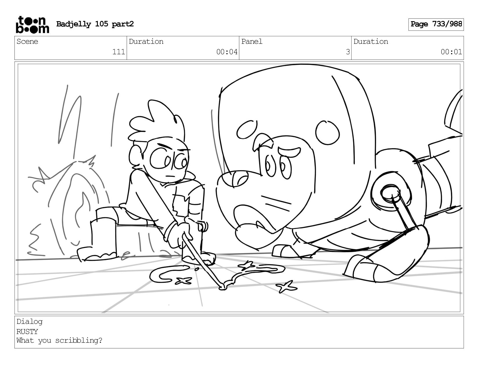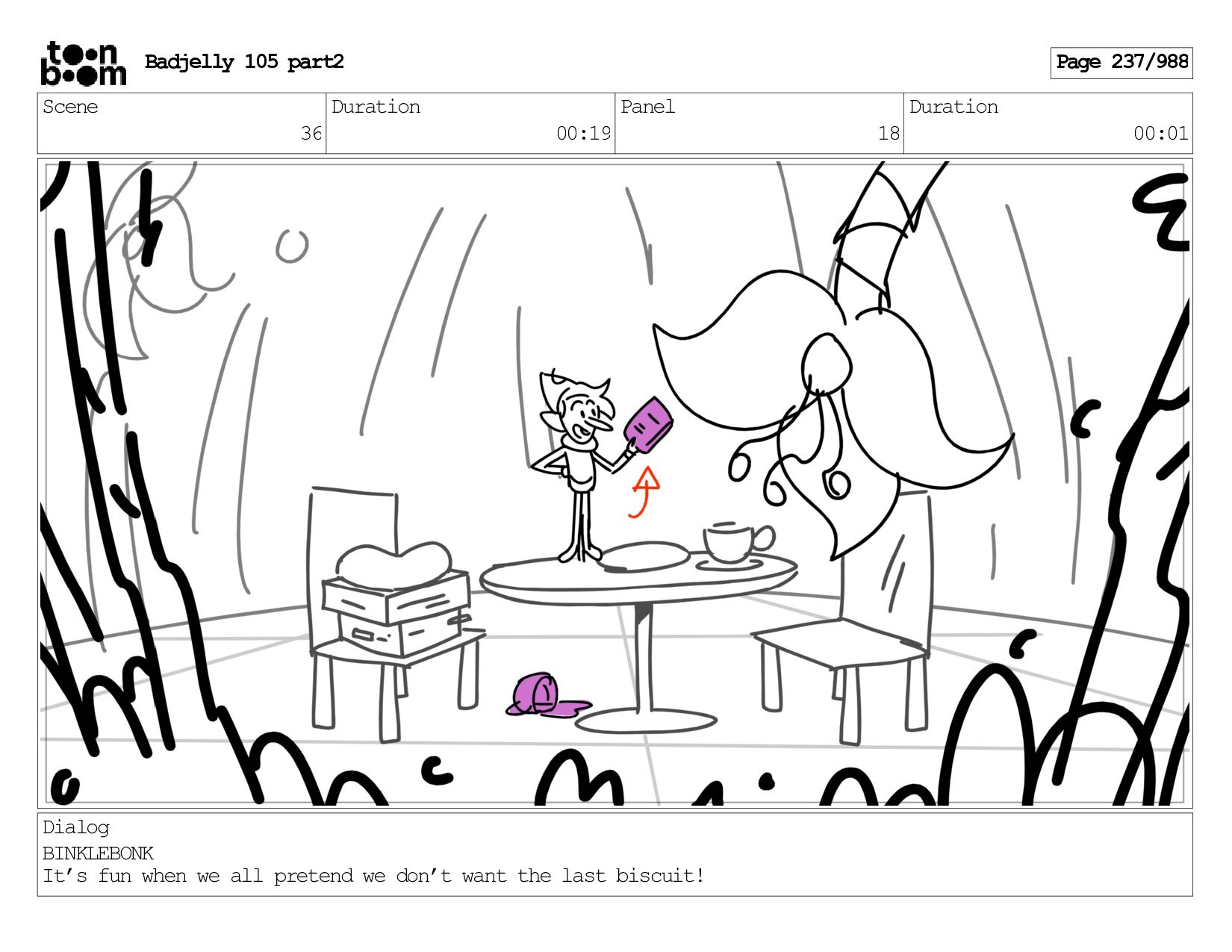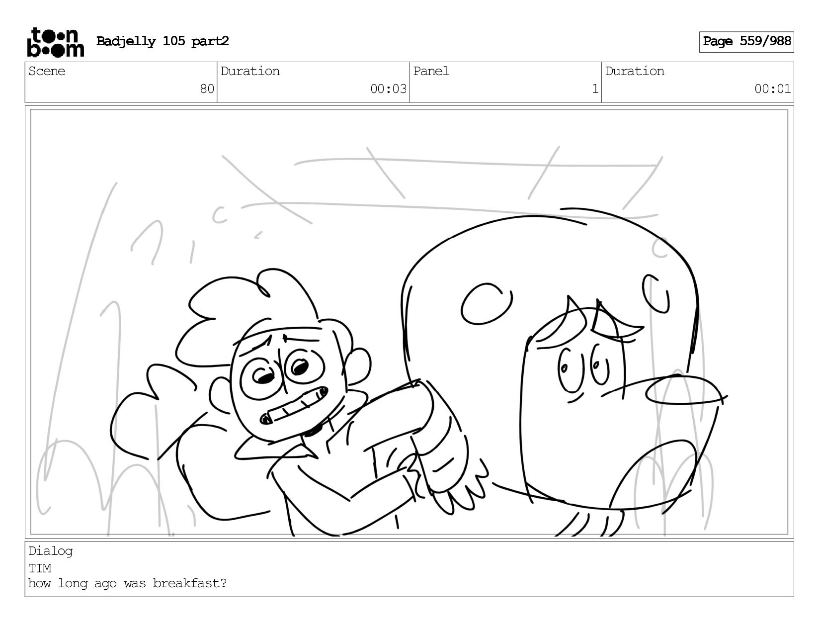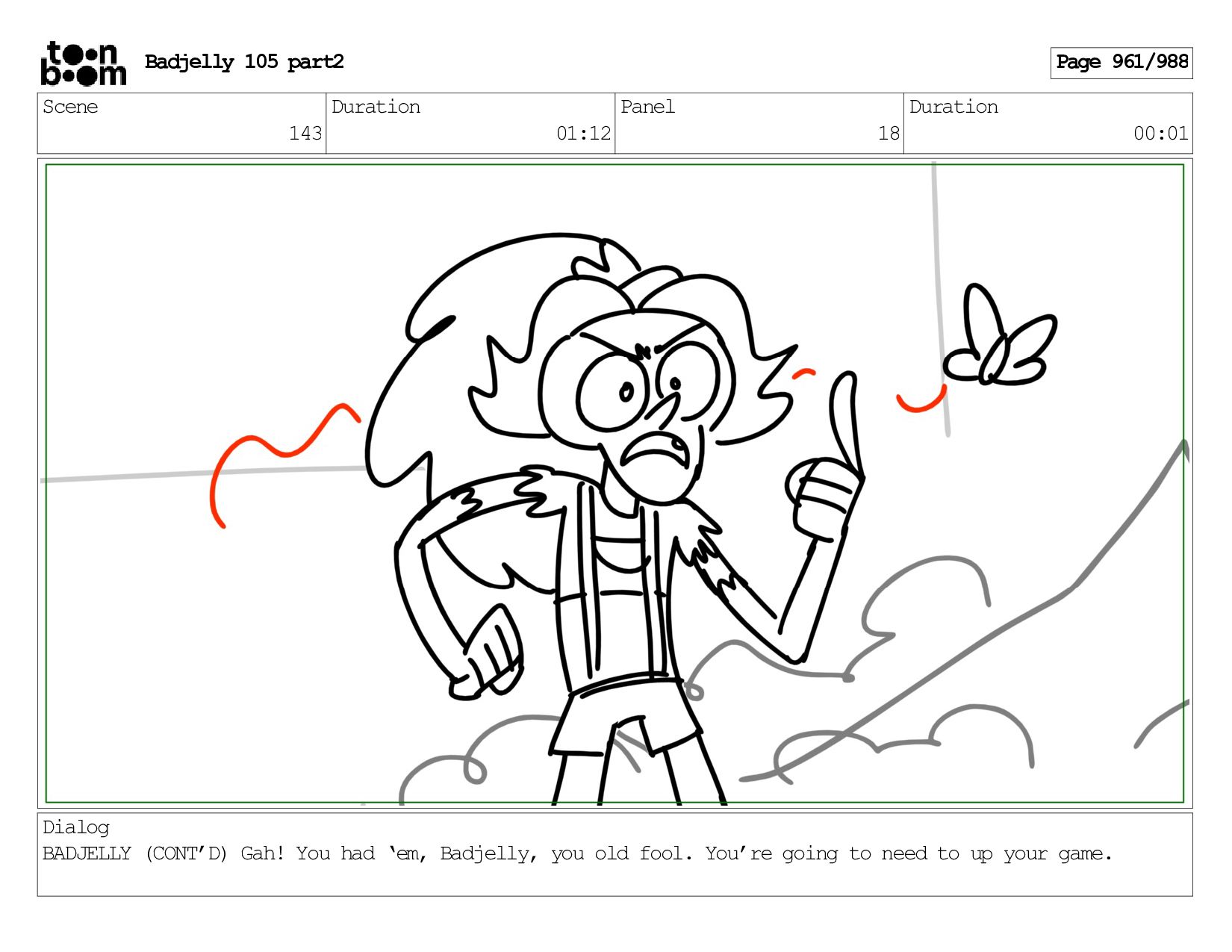 Scene 143 Duration 01:12 Panel 18 Duration 00:01 Dialog BADJELLY