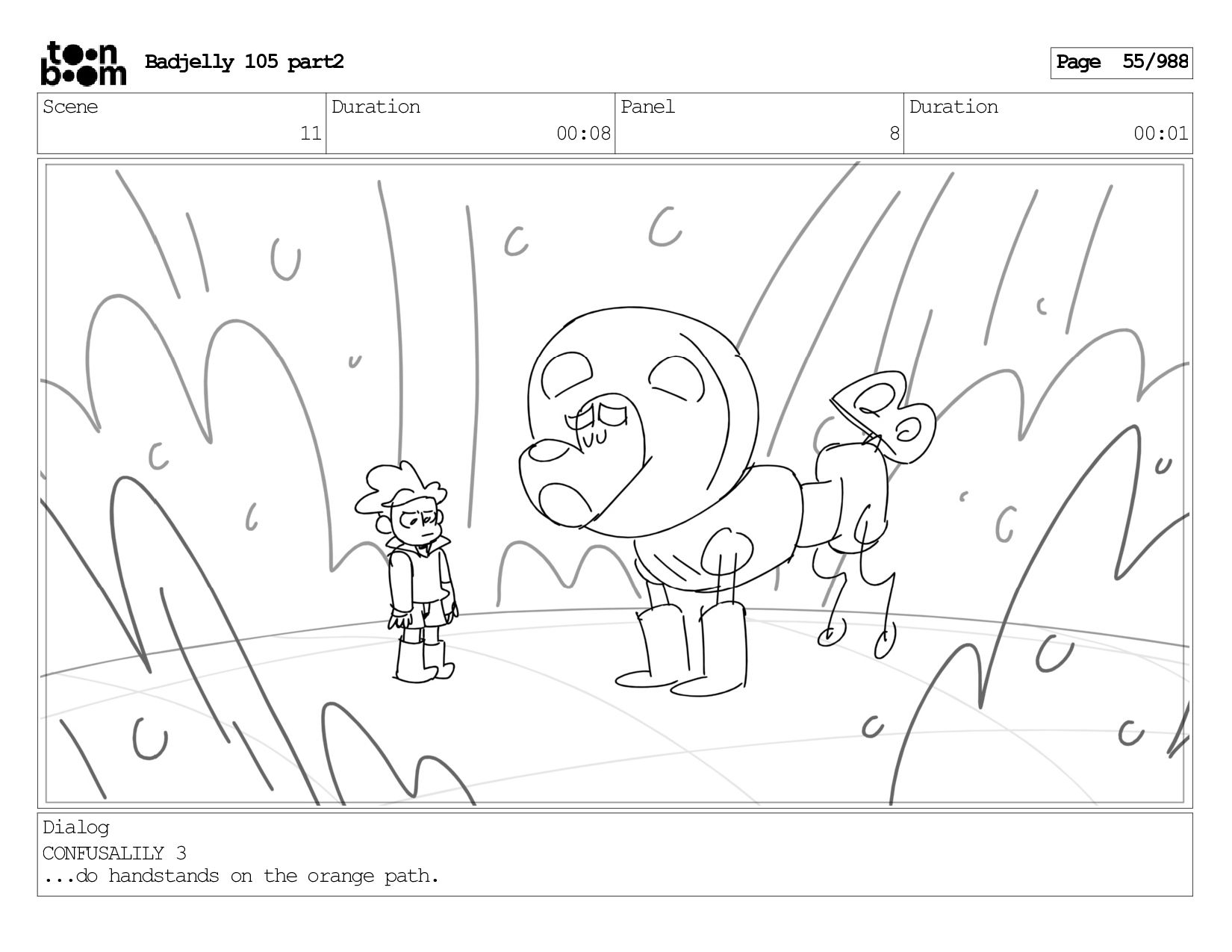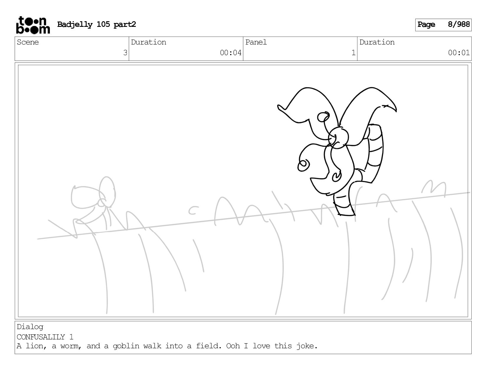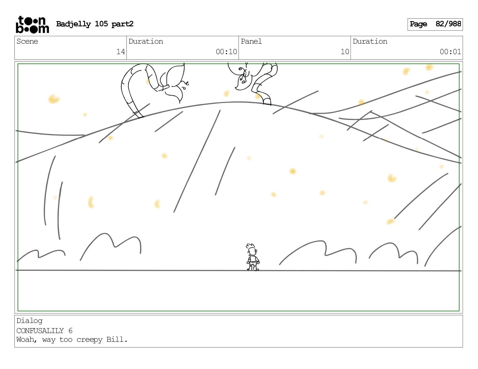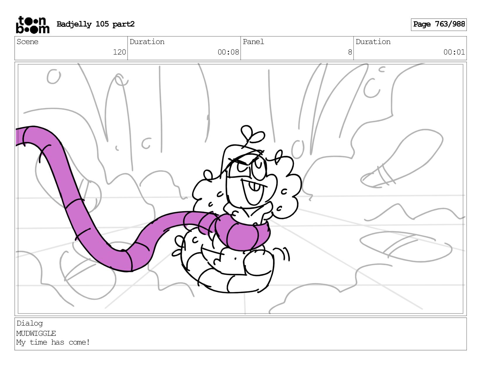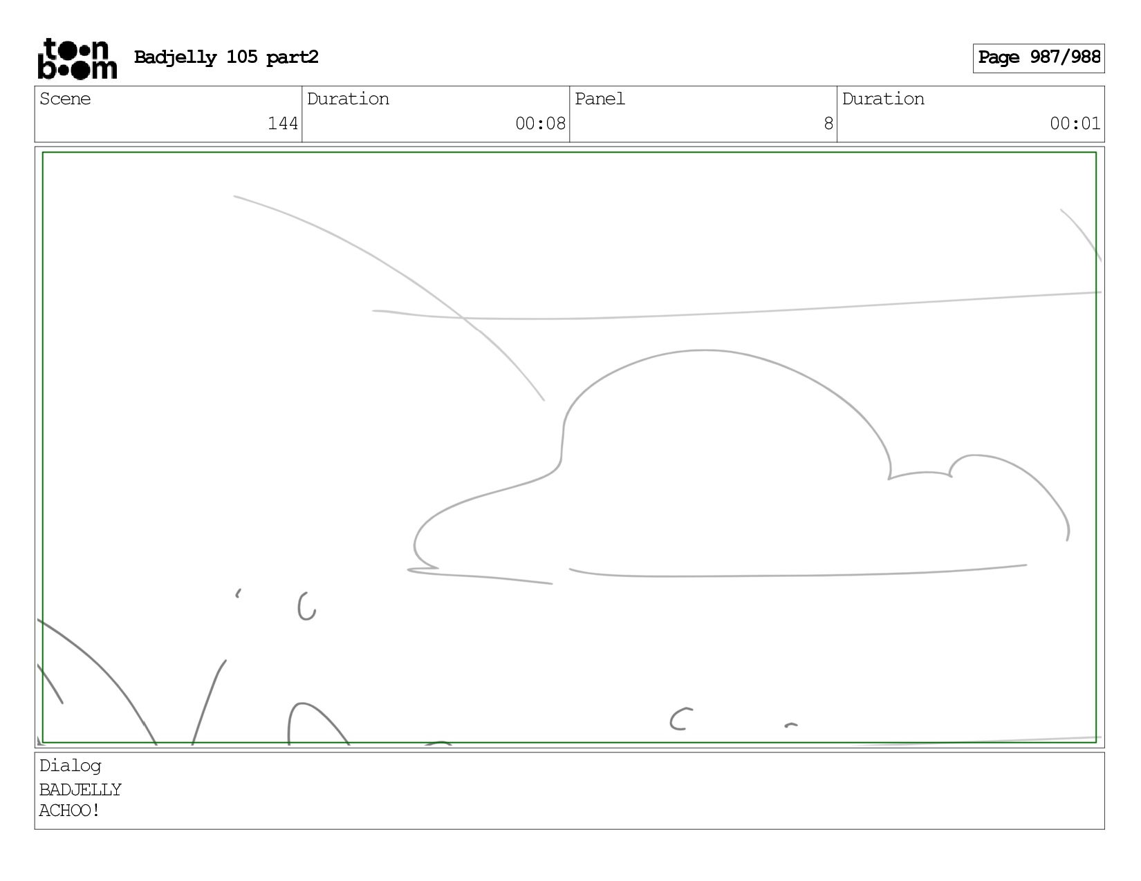 Scene 144 Duration 00:08 Panel 8 Duration 00:01 Dialog BADJELLY