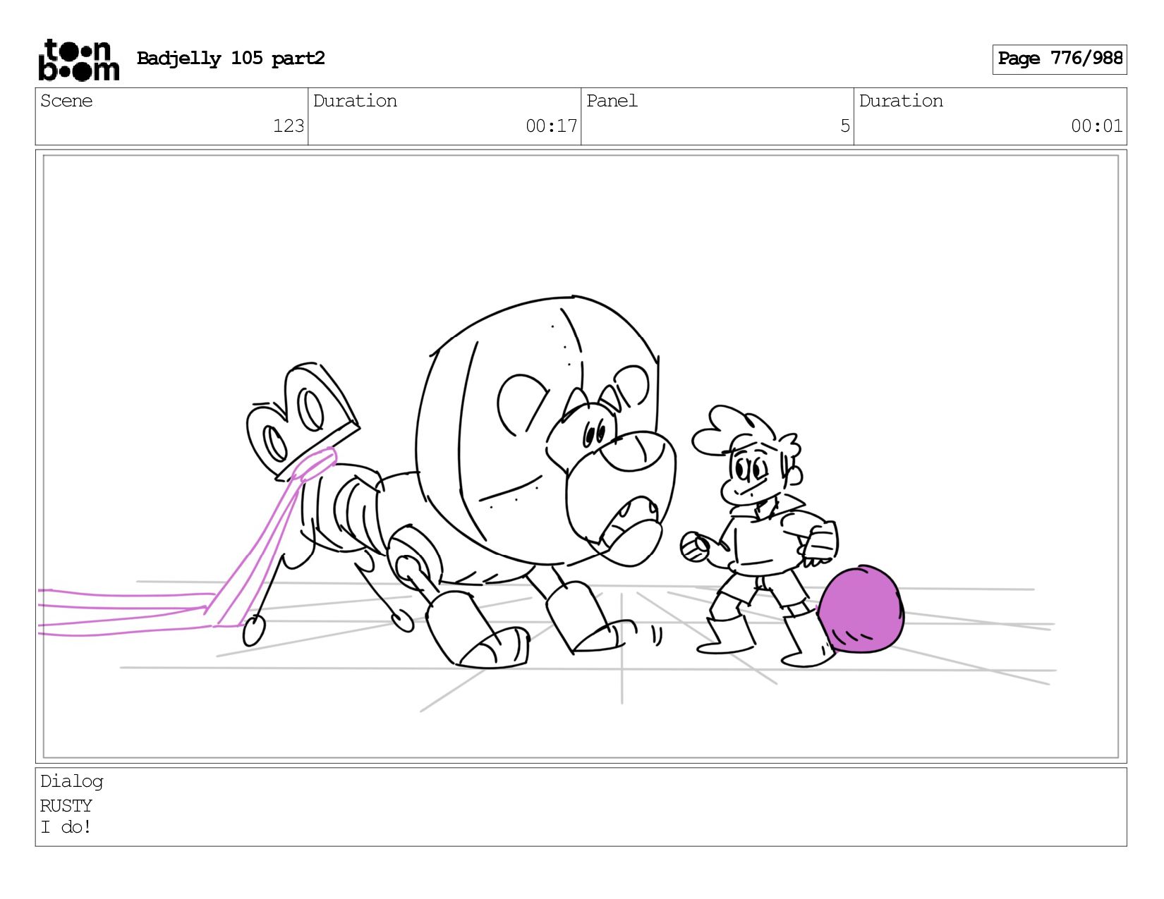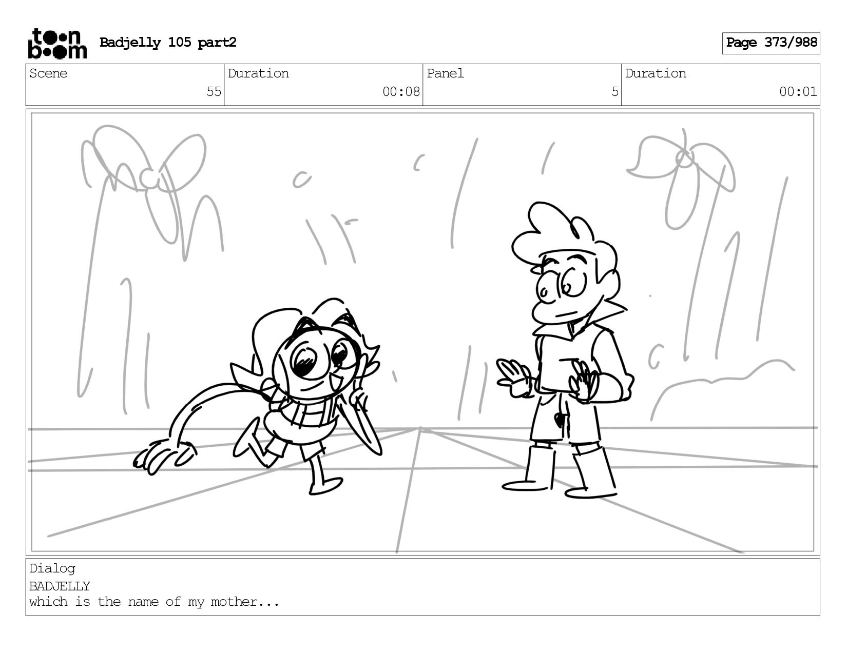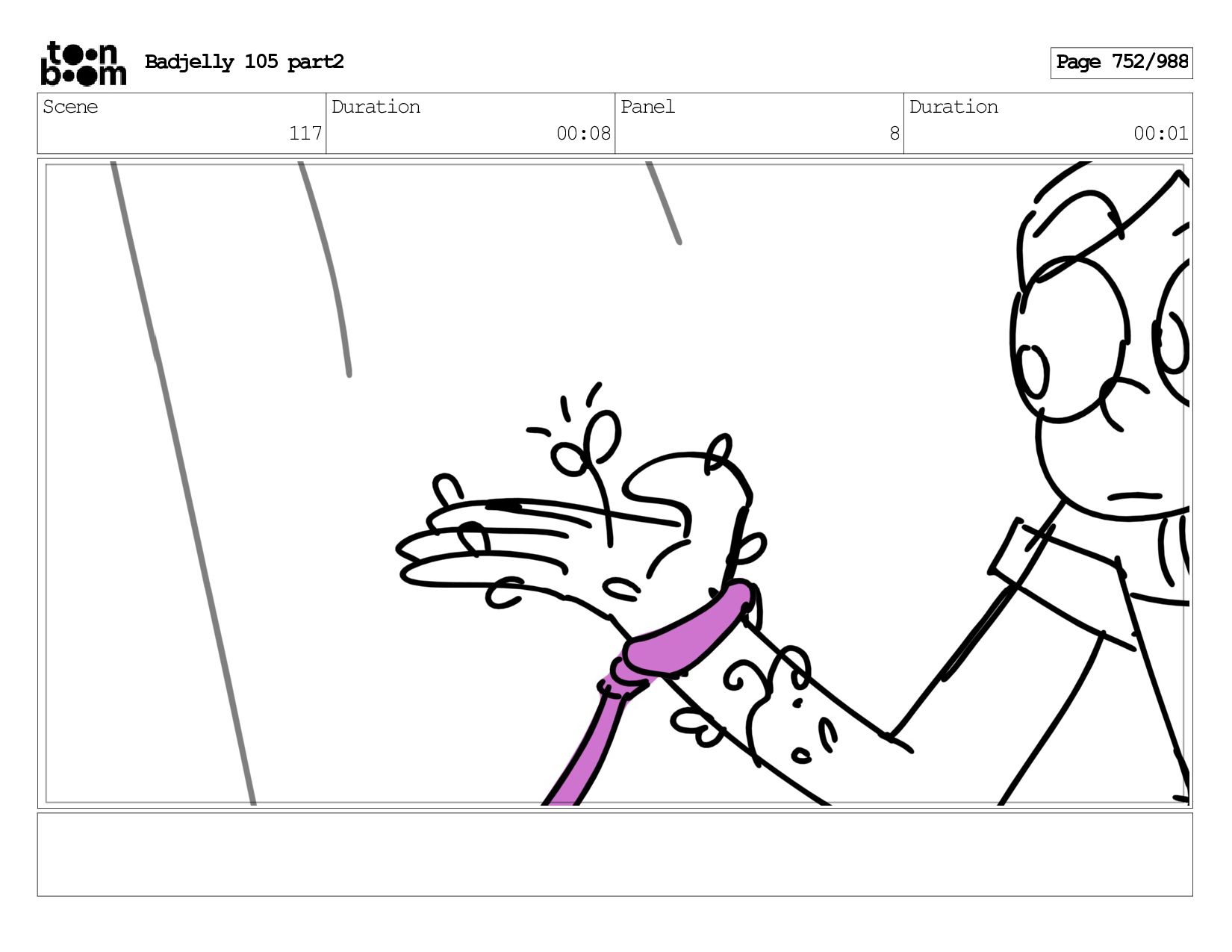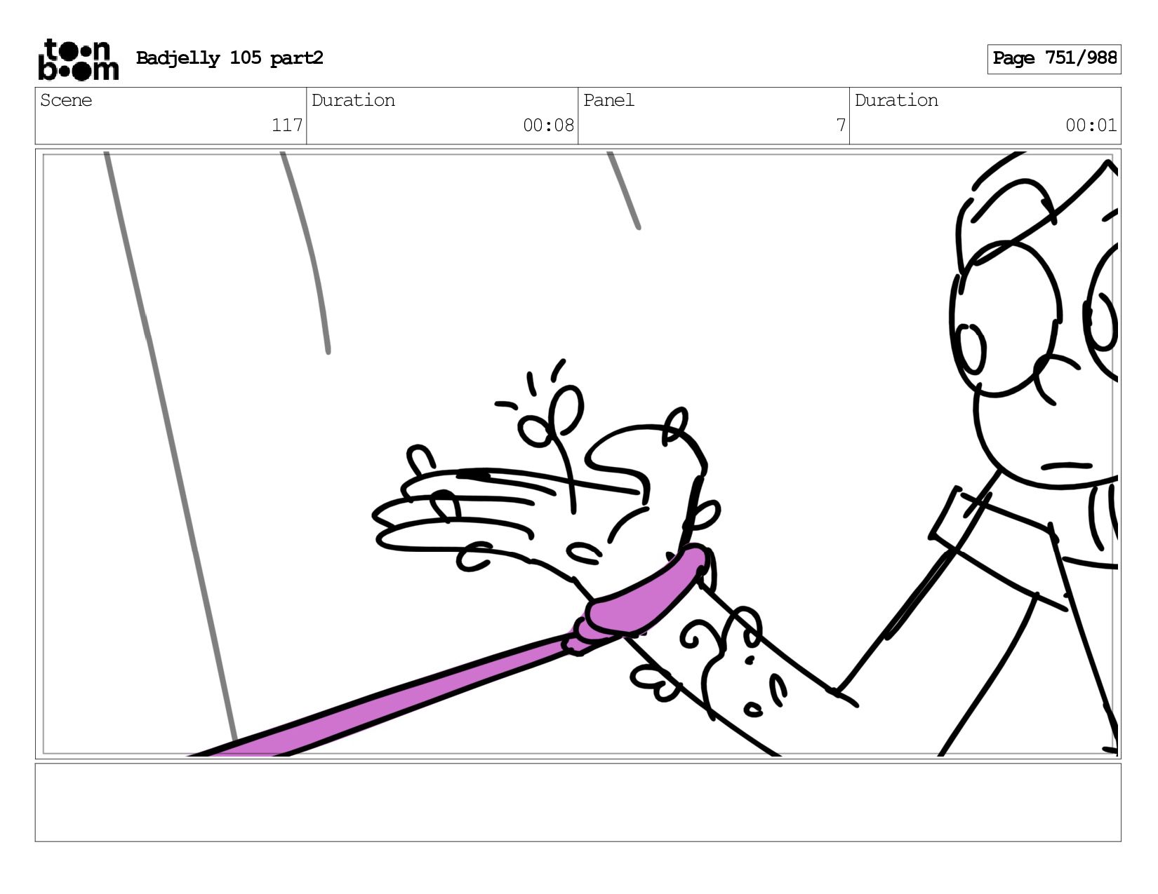 Scene 144 Duration 00:08 Panel 8 Duration 00:01 Dialog BADJELLY