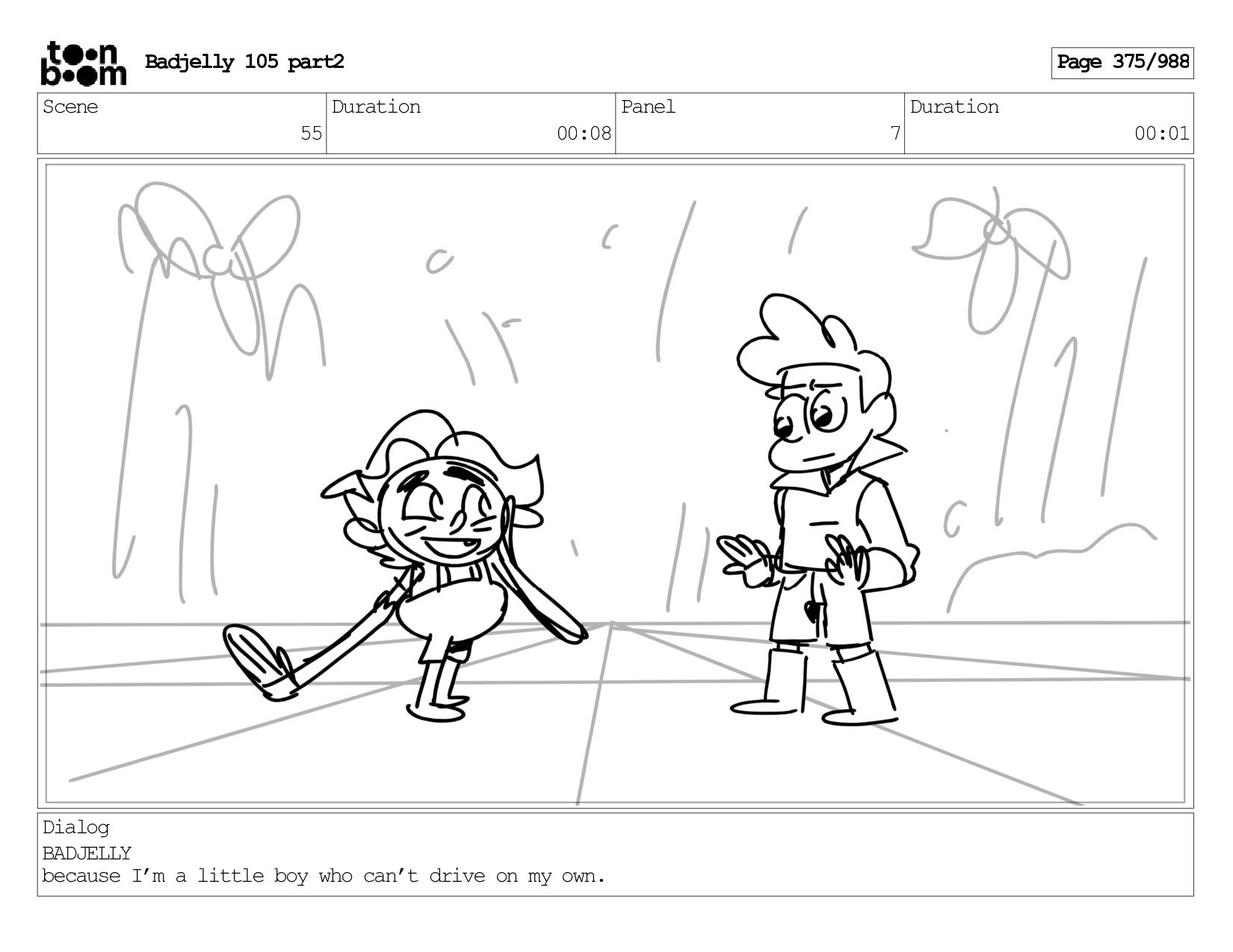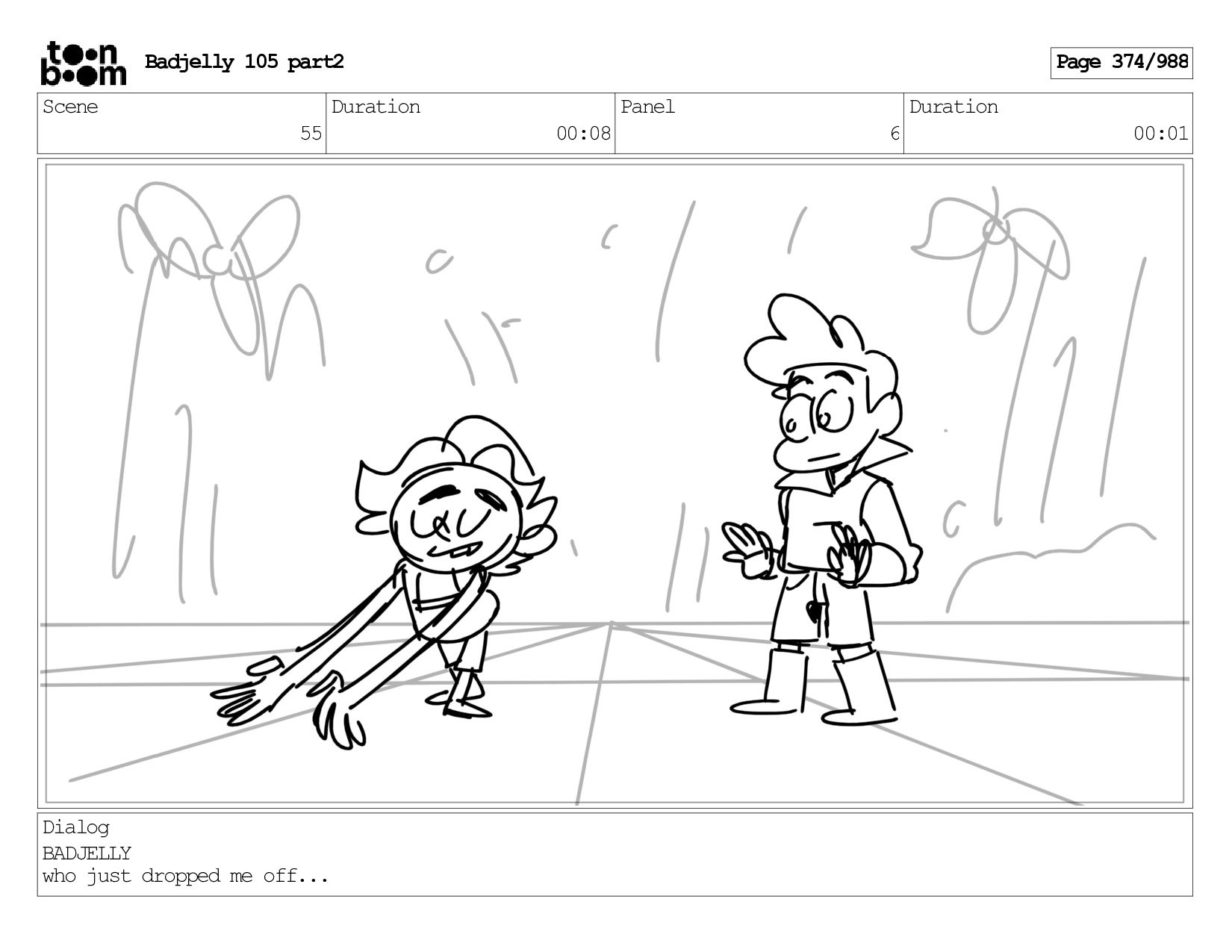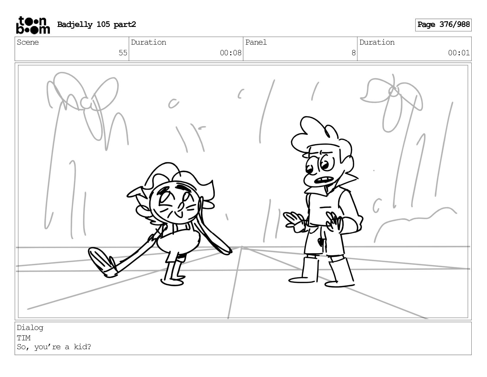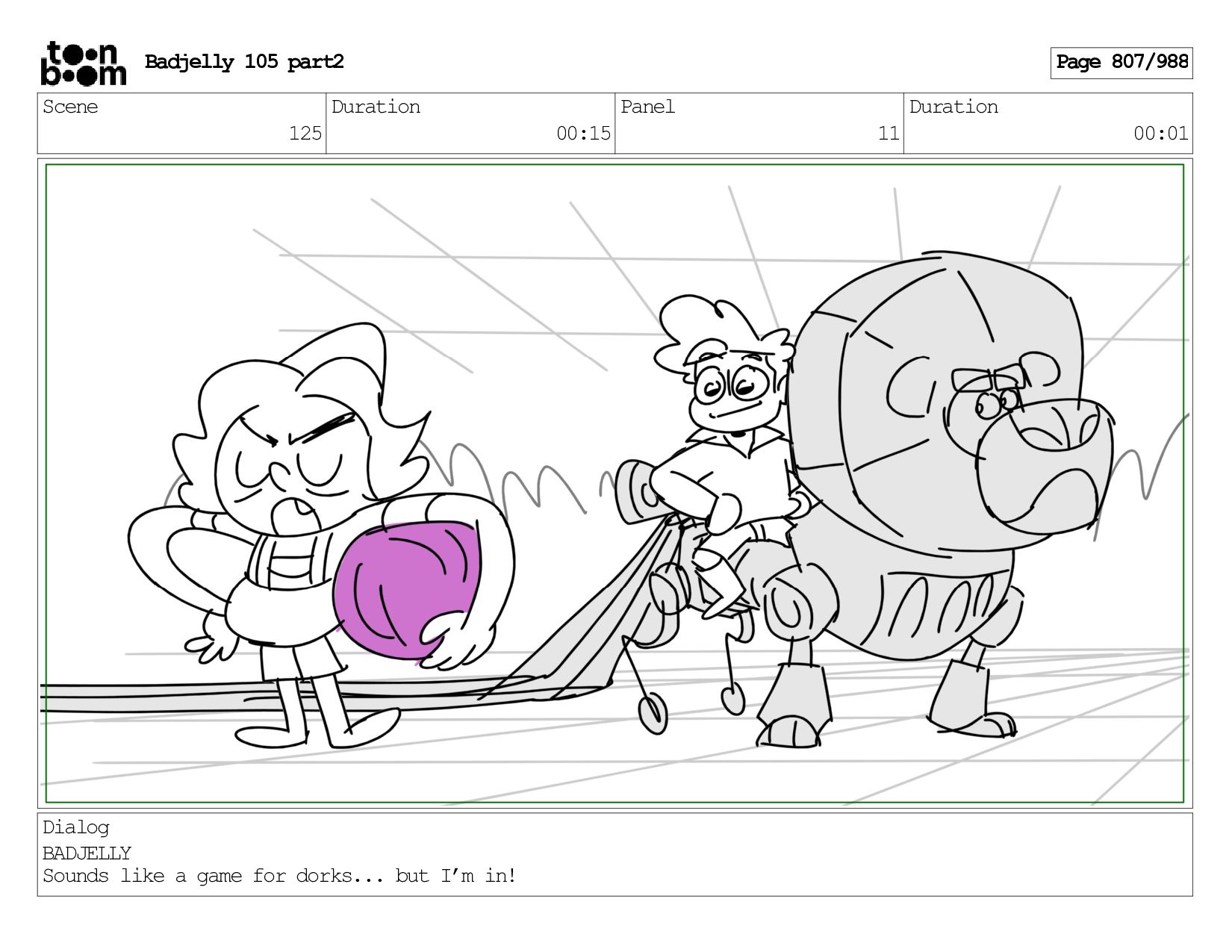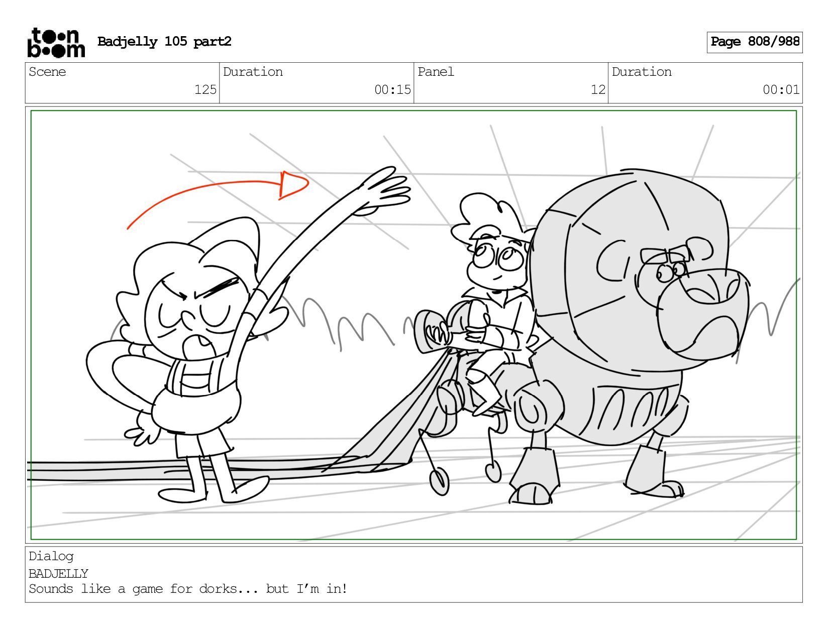 Scene 144 Duration 00:08 Panel 8 Duration 00:01 Dialog BADJELLY