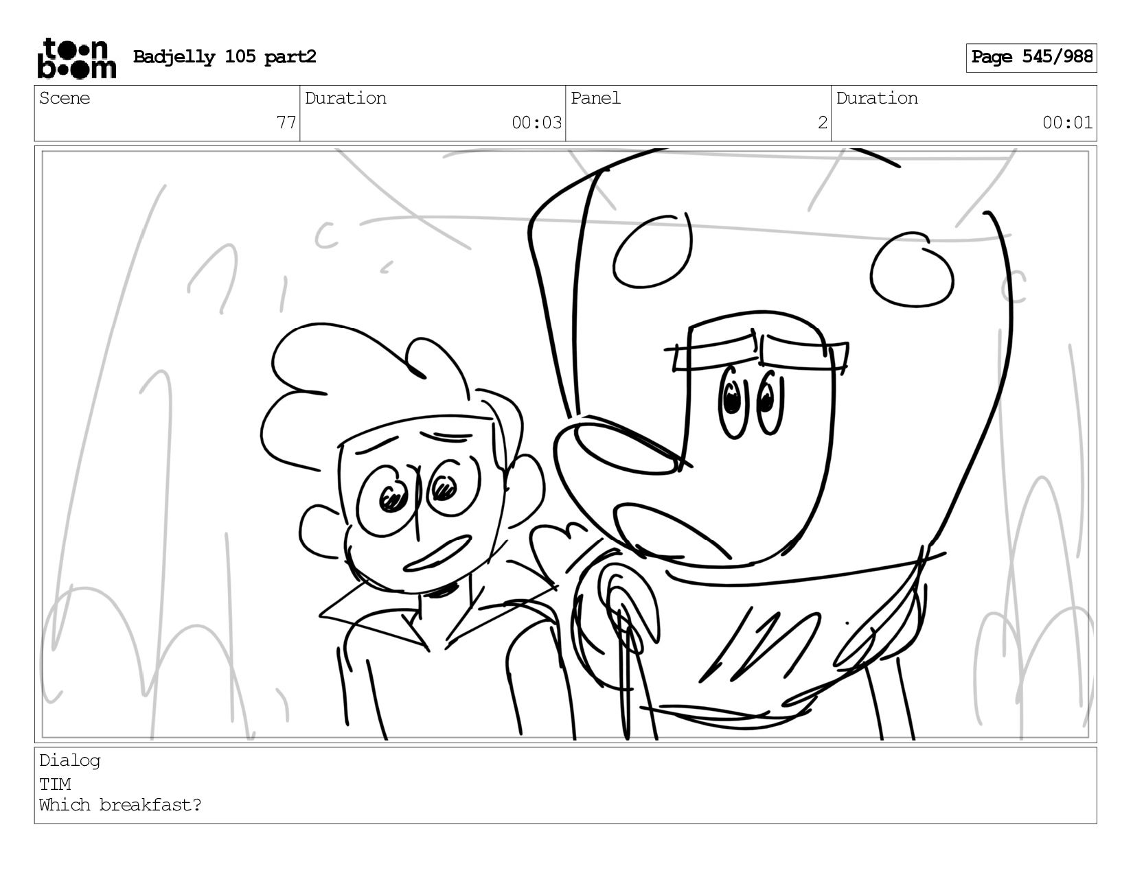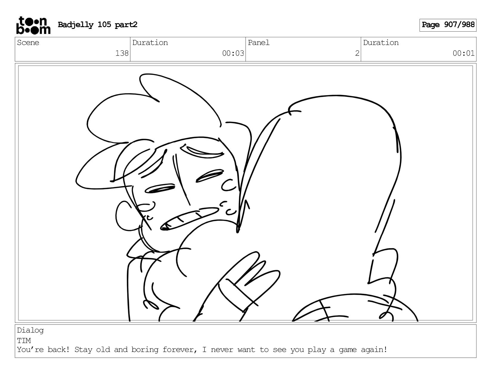 Scene 143 Duration 01:12 Panel 2 Duration 00:01 Dialog BADJELLY