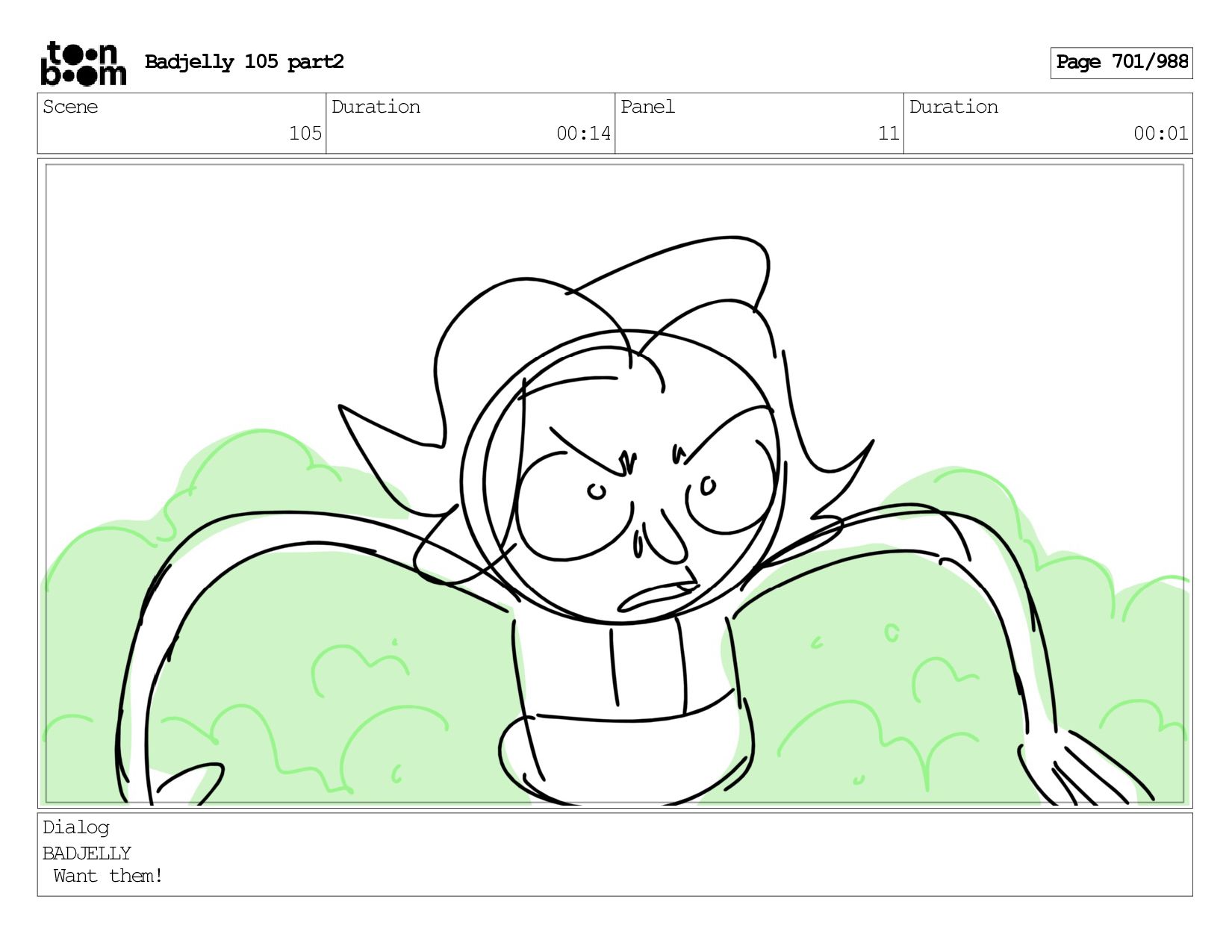 Scene 142 Duration 00:11 Panel 11 Duration 00:01 Badjelly 105