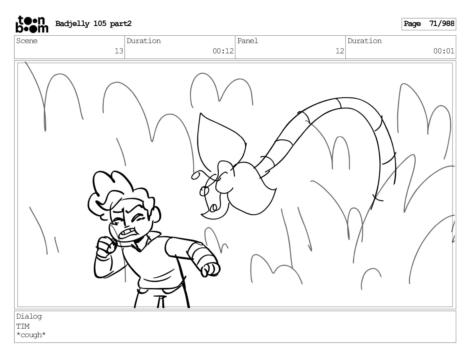 Scene 143 Duration 01:12 Panel 12 Duration 00:01 Dialog BADJELLY
