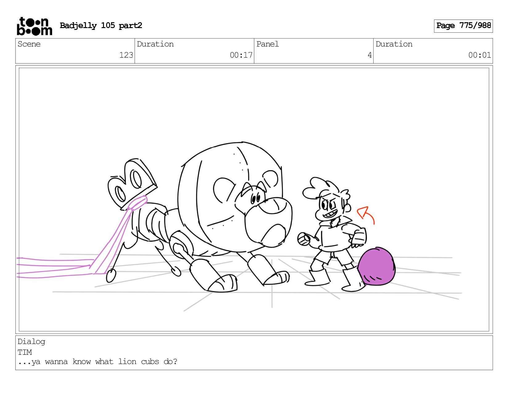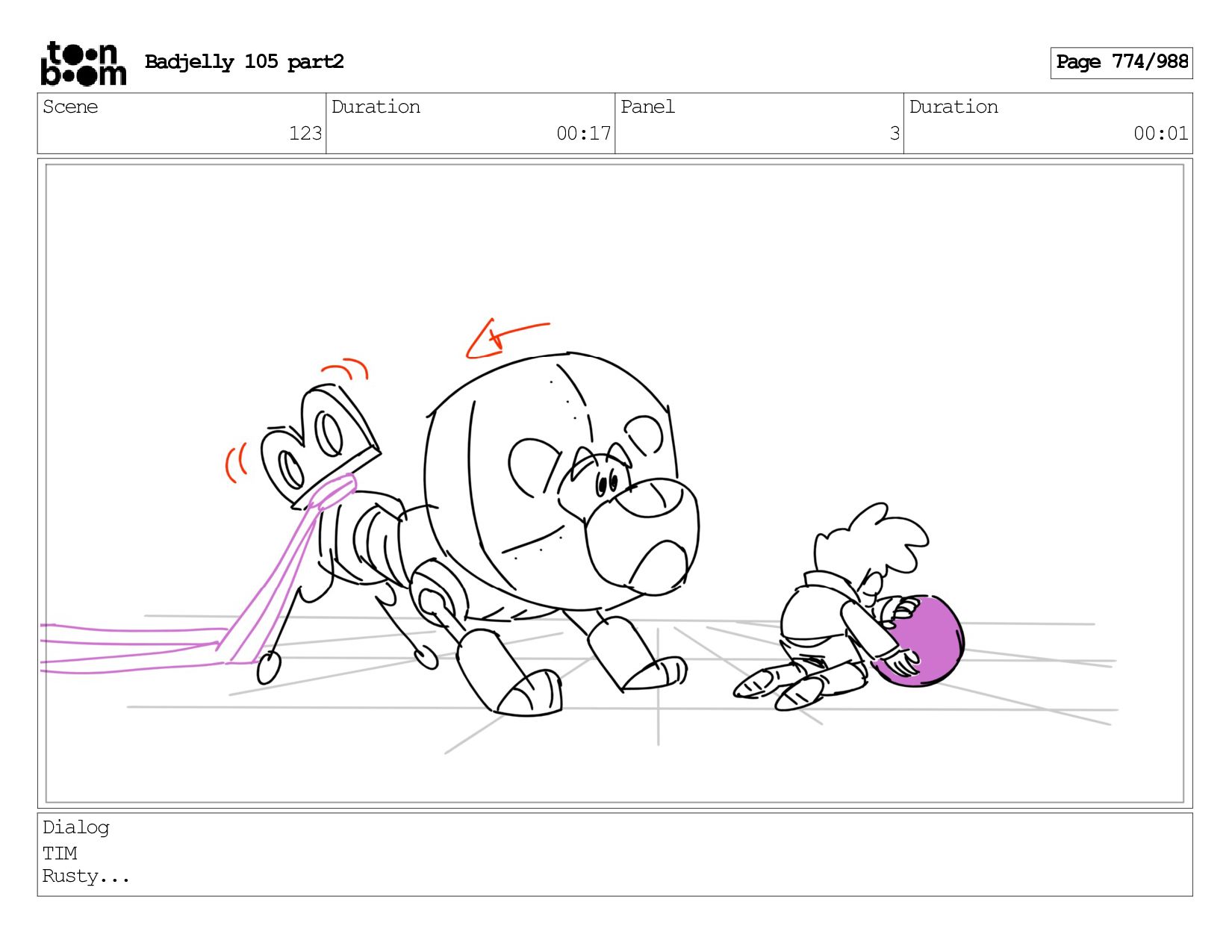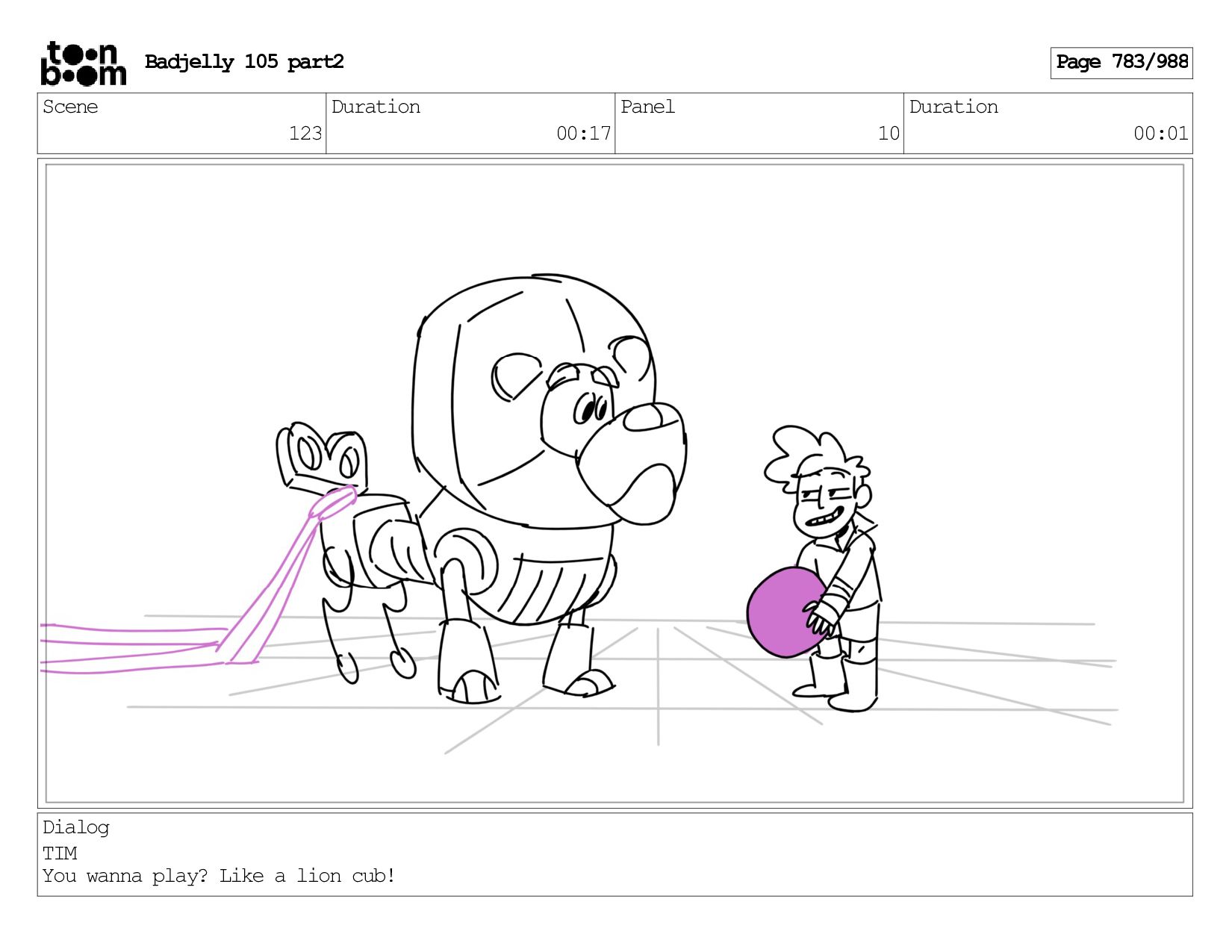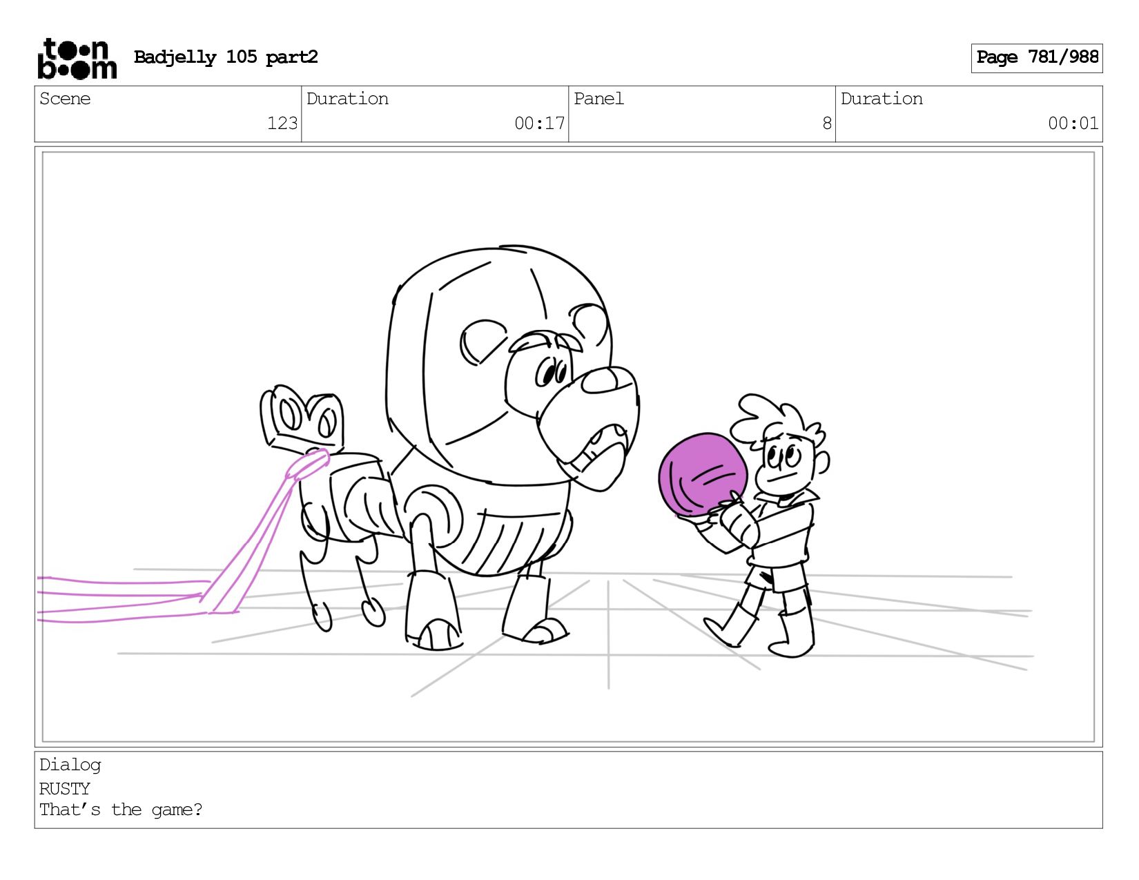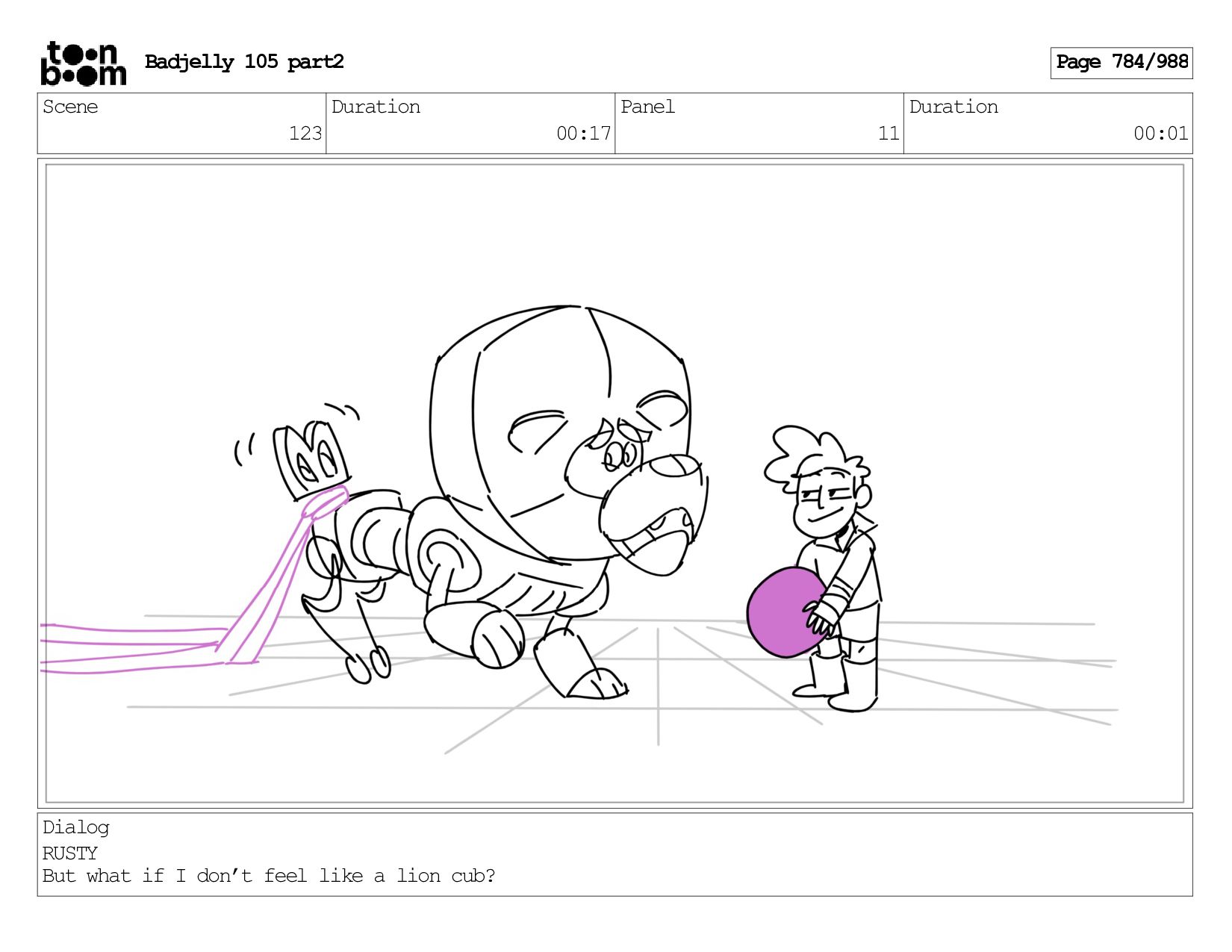 Scene 143 Duration 01:12 Panel 17 Duration 00:01 Dialog BADJELLY